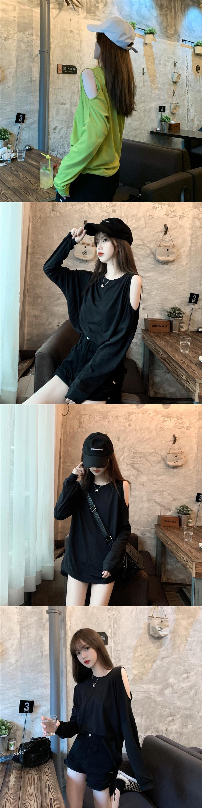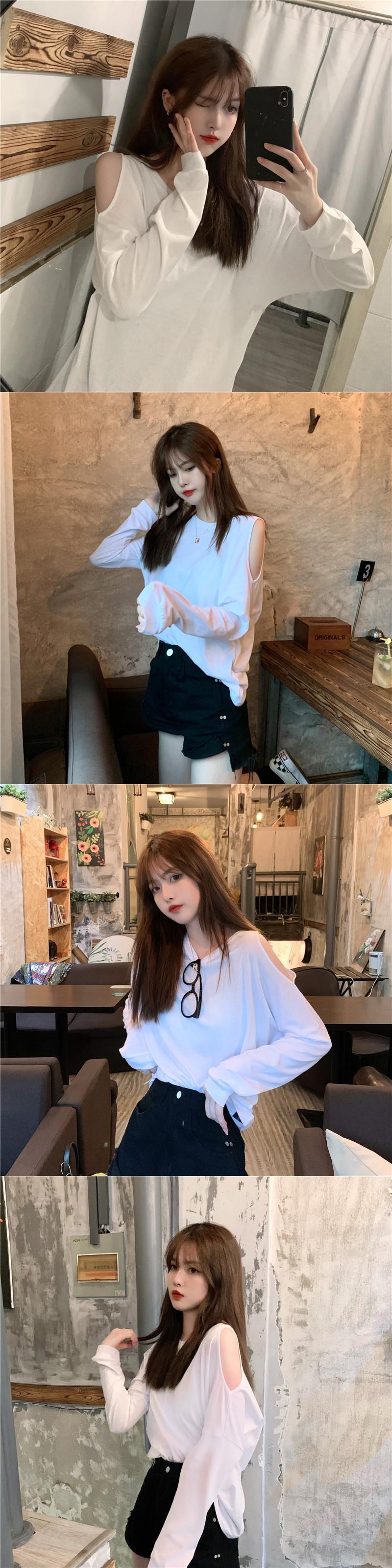 ネットレッドオフショルダー長袖Tシャツ女性インタイド2020年夏新作センスワイルドルーズ無地トップス タオタオイ58641234403