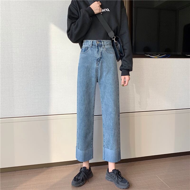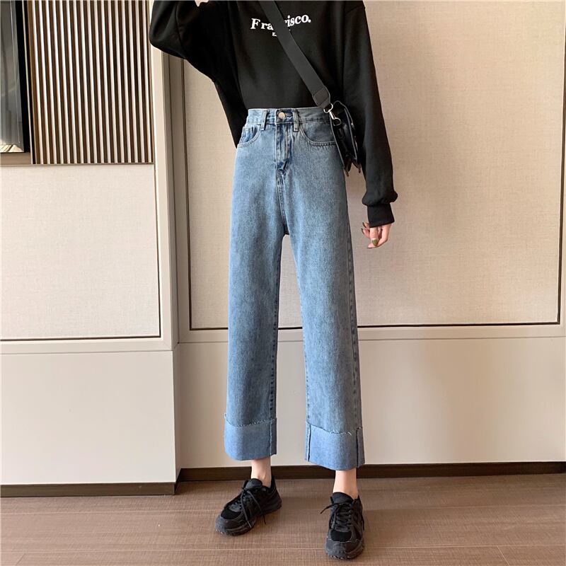 -ウエストジーンズの女性2020年夏のルーズストレートレッグパンツの新バージョンは、薄くて背の高い9ポイントパンツワイドレッグパンツです タオタオイ30342793132