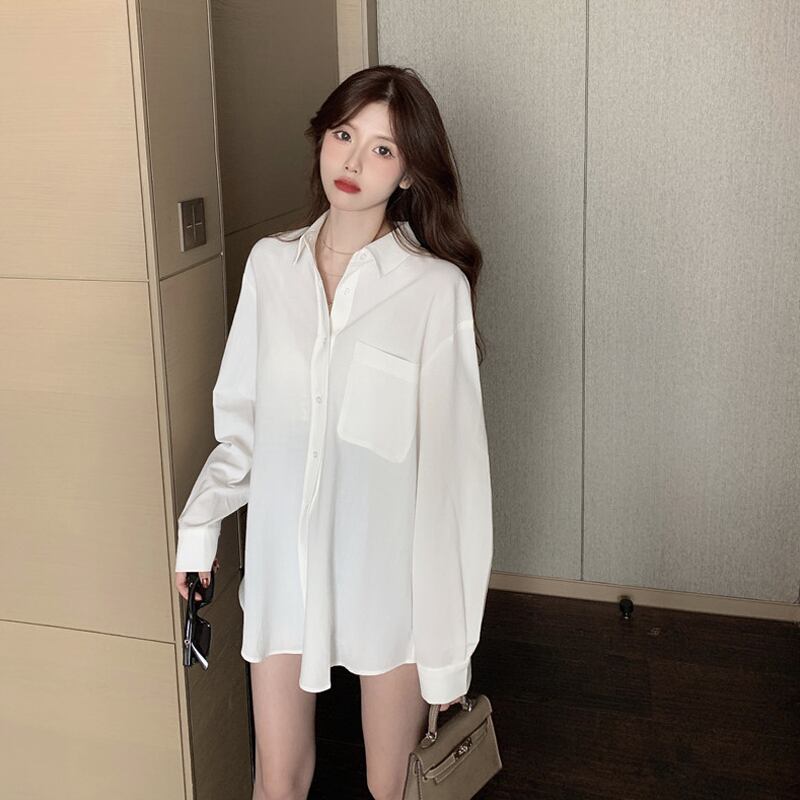 薄手の長袖シャツ女性2020年秋新バージョンルーズミドル丈サンスクリーンシャツオールマッチポロカラートップ タオタオイ5482236469