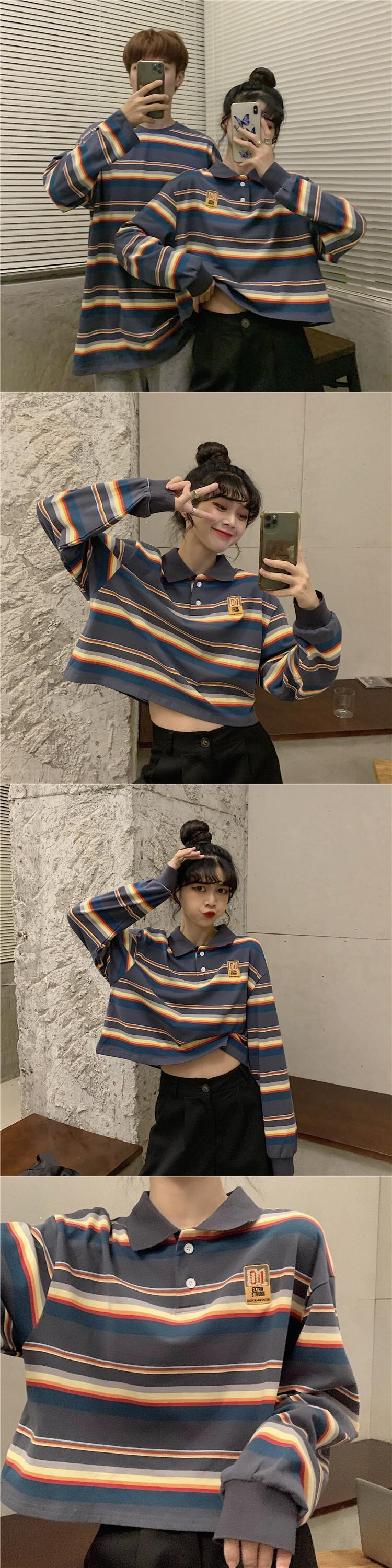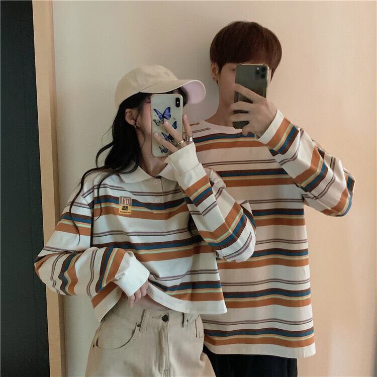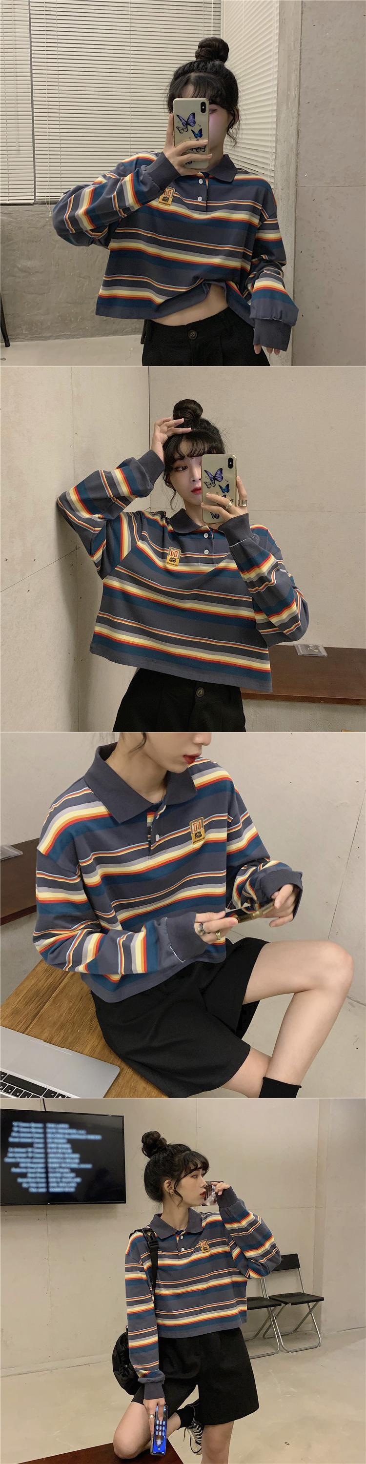 ストライプの長袖Tシャツ女性インスティッド2020年夏のワイルドルーズショートポロシャツトップの新バージョン タオタオイ56609012008