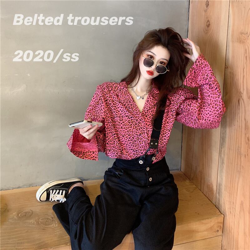 ヘップバーンスタイルスーツレディース2020年夏新デザインセンスヒョウシャツイレギュラービブパンツウエスタンスタイルツーピーススーツ タオタオイ59011271934