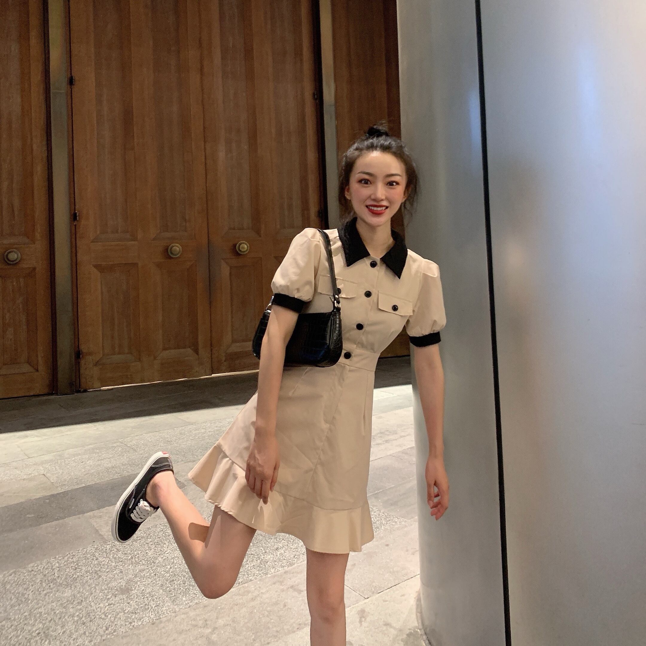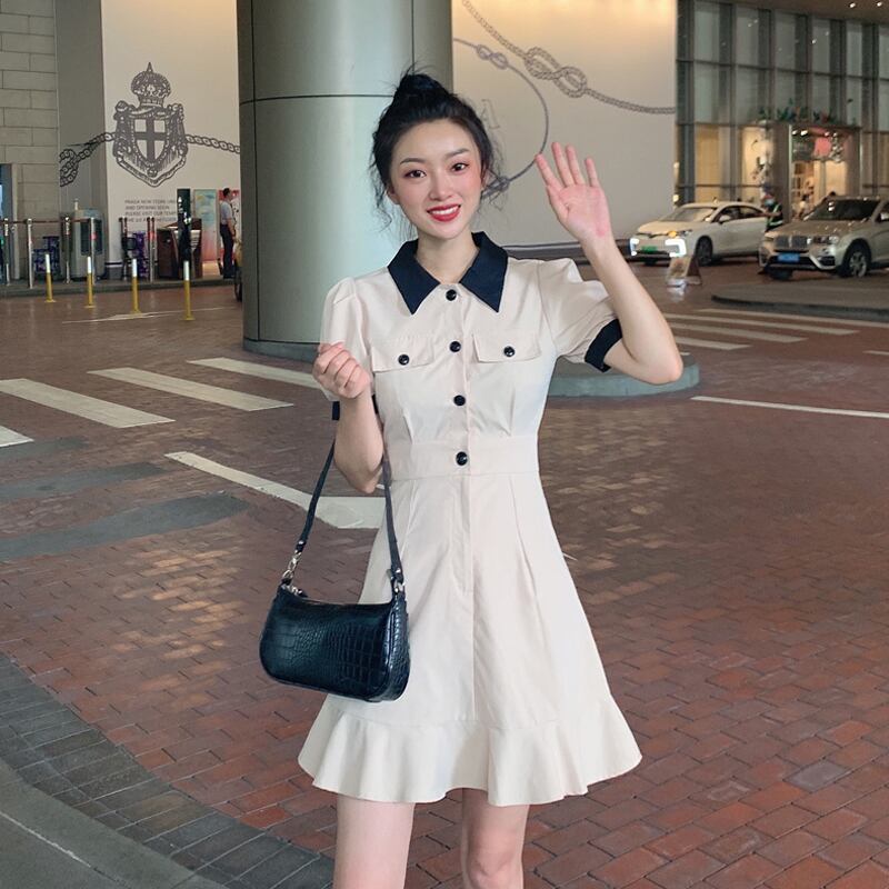 レトロなオーバーオールスカートポロスリーブポロドレス女性2020年夏新しいスカート気質は細いAラインスカートです タオタオイ56035678655