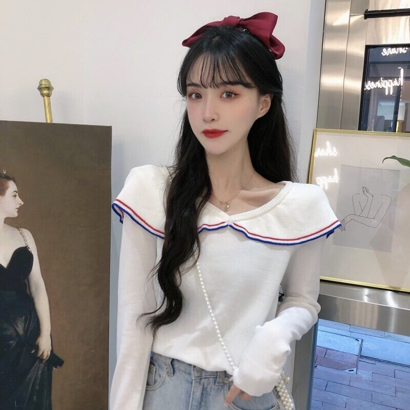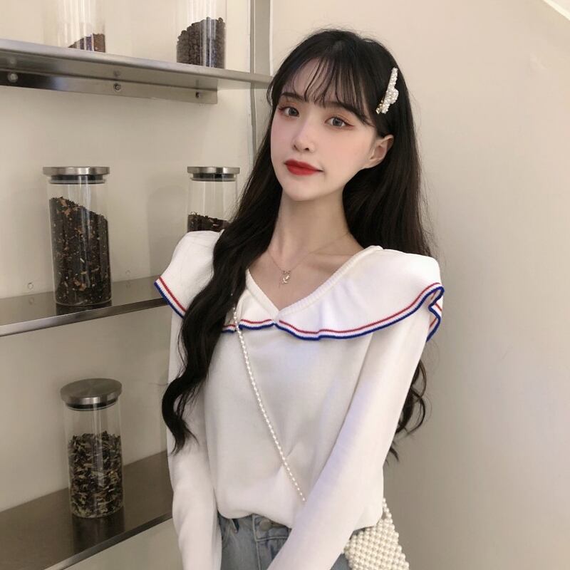 2020年秋新作ホワイト長袖セーターレディース春秋Vネック薄手デザインセンスのウエスタンスタイル秋トップ タオタオイ10414760007