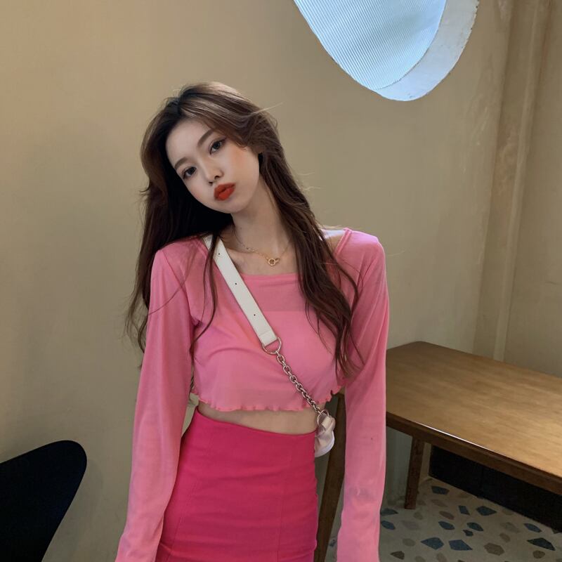 スウィートウェーブサイドサンスクリーンシャツ2020年夏ショートクロップド長袖Tシャツ女性ネットレッドトップトレンドの新バージョン タオタオイ16517782575