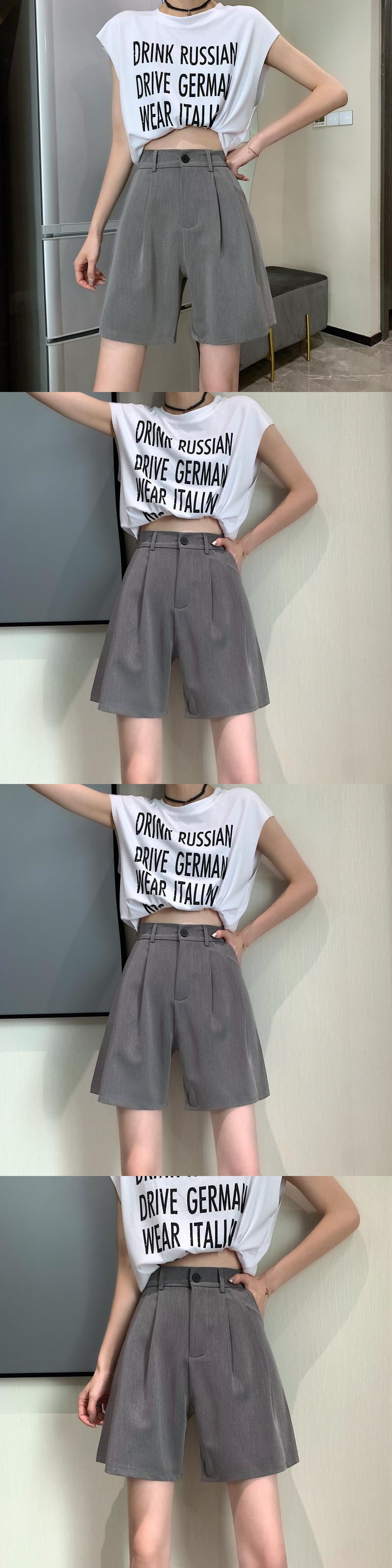 ウエストカジュアルパンツスーツレディース2020年夏新作ルーズワイドレッグパンツストレートパンツは薄手のワイルドショートパンツでした タオタオイ3772568689