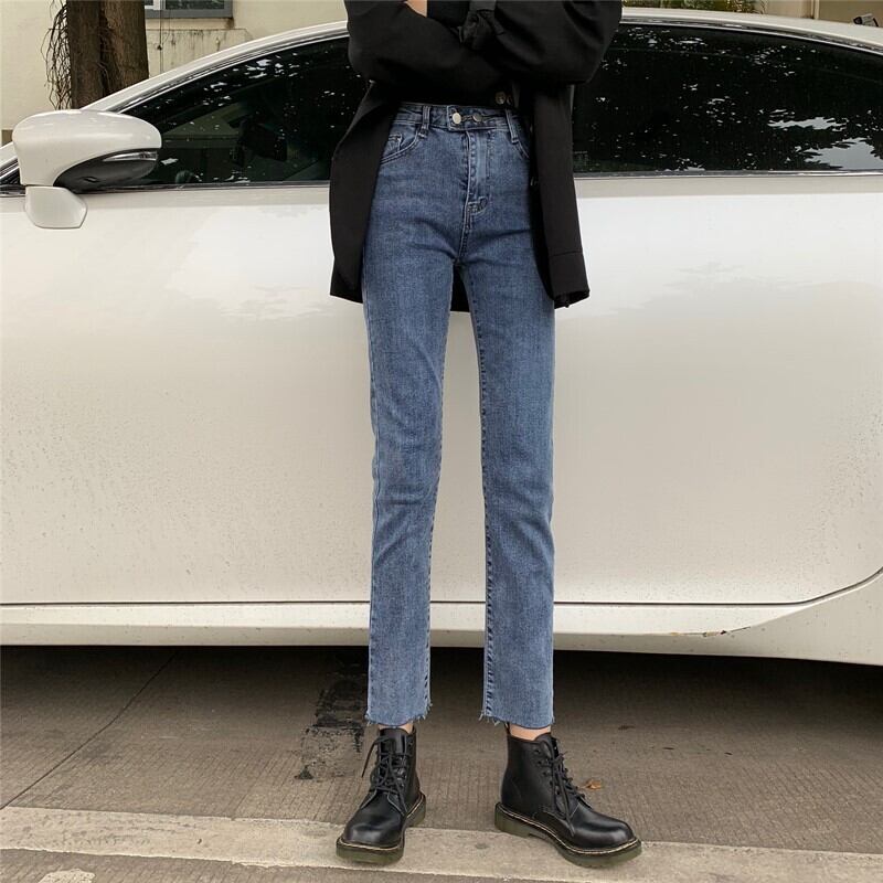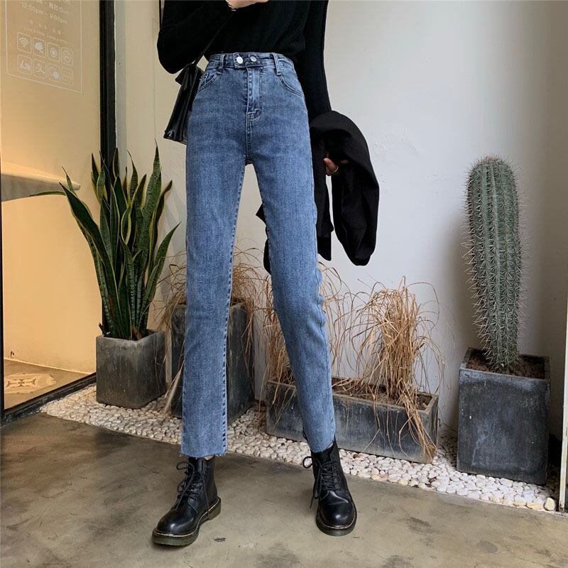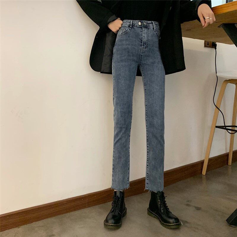 2020年秋新バージョンのハイウエストジーンズレディースストレートレッグパンツは薄くてワイルドなネットレッドパンツストレッチナインポイントパンツ タオタオイ61856551227