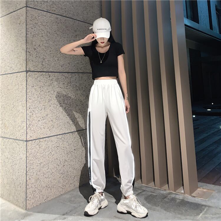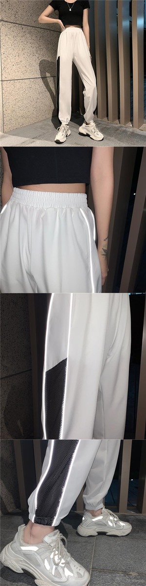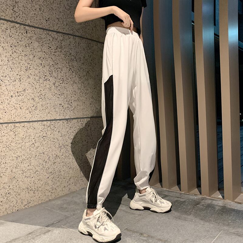 -ウエストカジュアルパンツ女性の2020年夏の新バージョンルーズフィットスポーツパンツ薄いメッシュハーレムパンツズボン タオタオイ71272923520