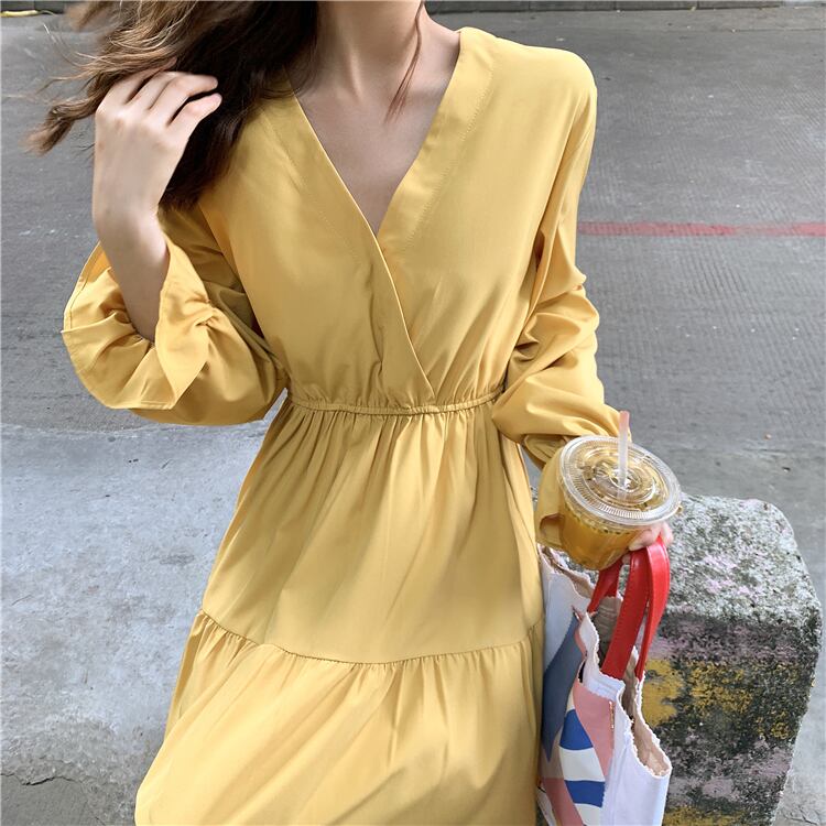 色:短い黒のドレス,ショートスカートイエローシングルワンピース,ロングスカート黒ワンピース,ロングスカートイエローシングルワンピース