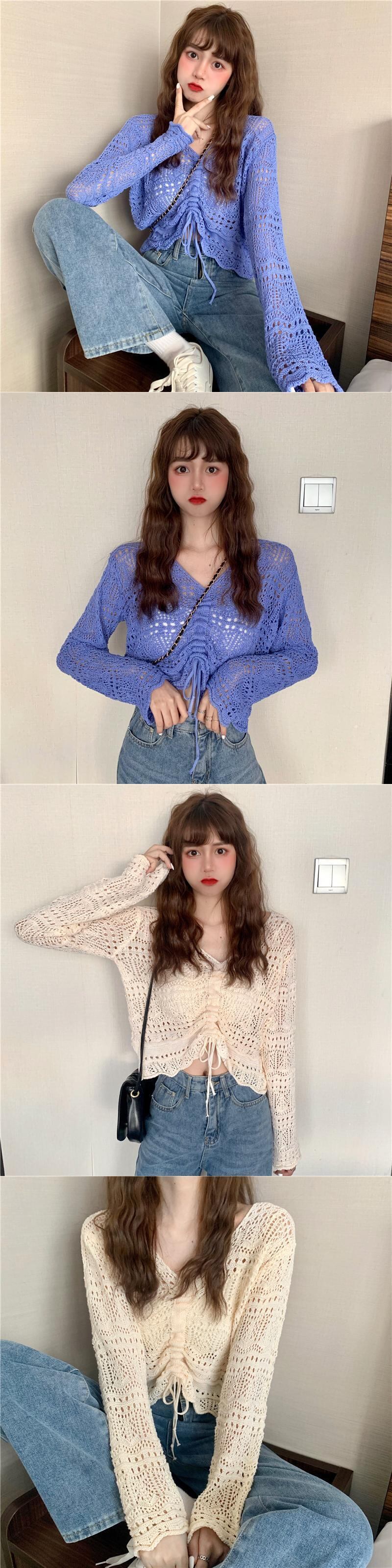 中空の薄い長袖セーター女性2020年夏の新しいデザインセンスVネックルーズサンスクリーントップ タオタオイ88542754972