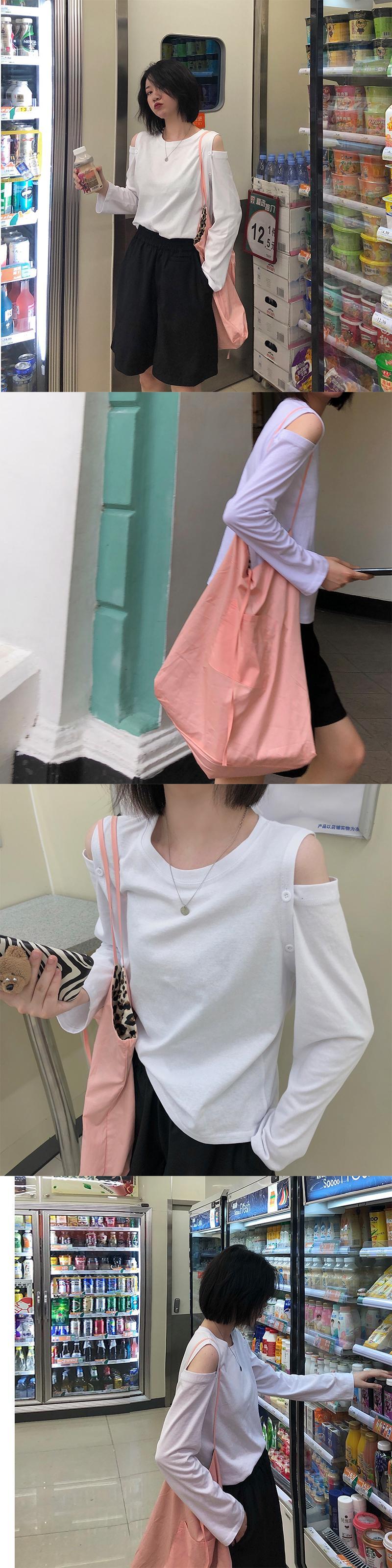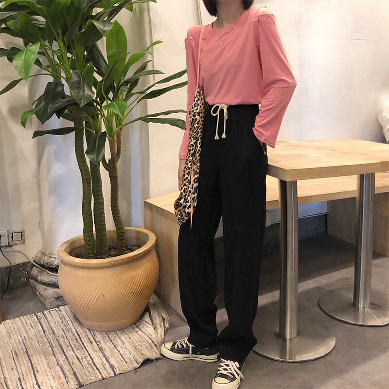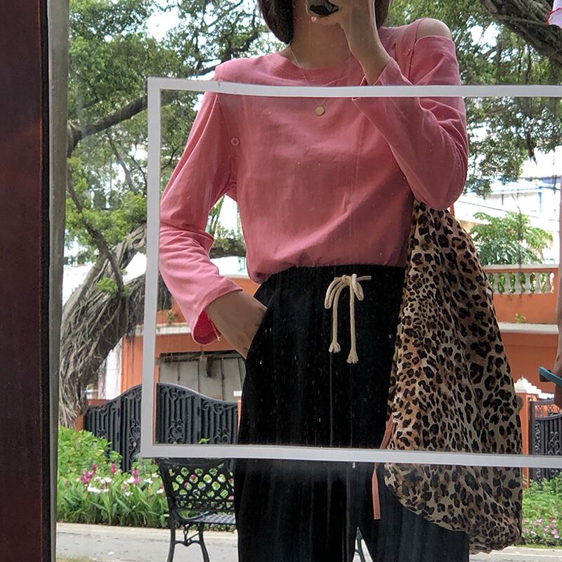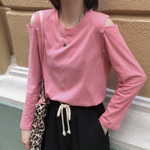 ネットレッド無地ストラップレスラウンドネックTシャツ女性2020年秋新デザインセンスニッチ長袖トップイントレンド タオタオイ3578489437