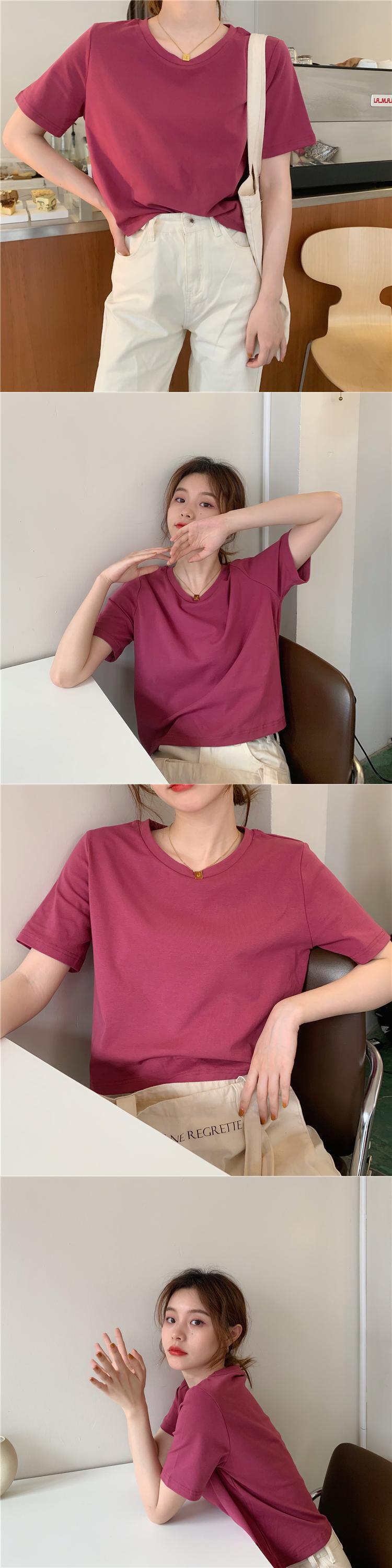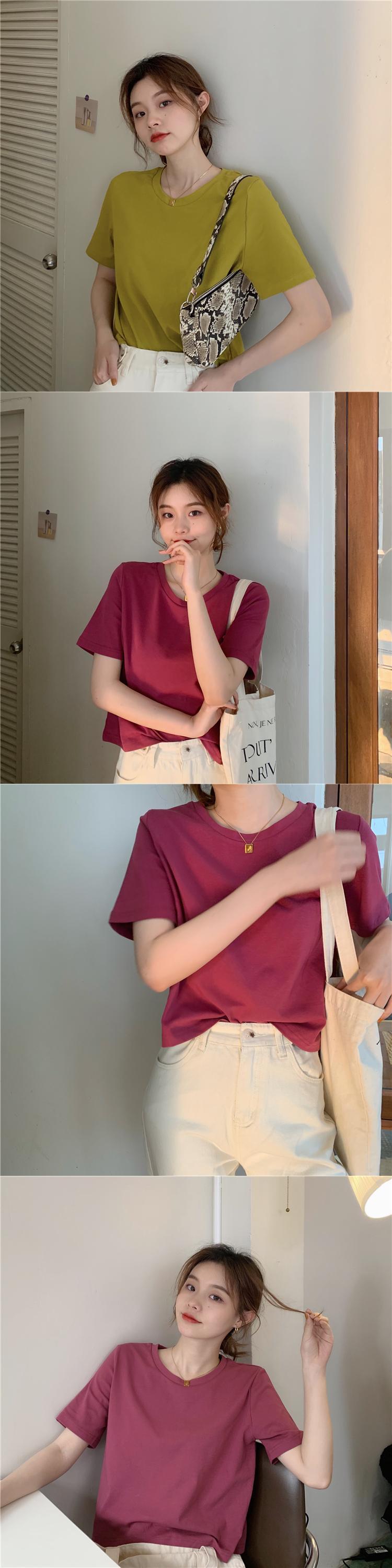2020年夏の新しいシックな無地のラウンドネック半袖Tシャツ女性のルーズで薄いネットレッドショートトップトレンド タオタオイ42512578120
