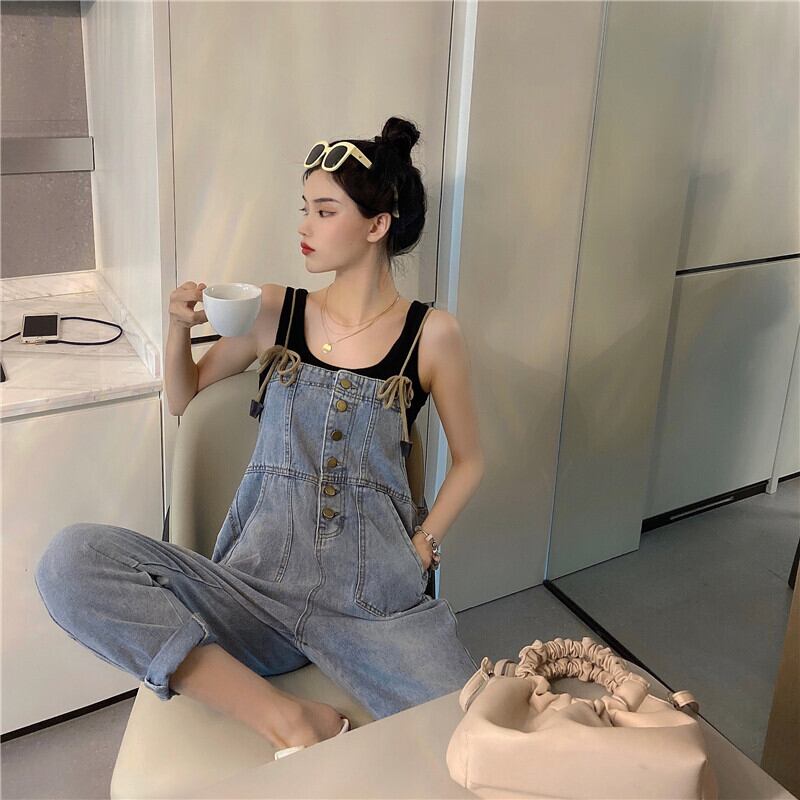ヒョナ風ライトカラージーンズレディース2020年夏ネットレッドオーバーオールルーズワイドレッグパンツ9点パンツ新バージョン タオタオイ84237917105