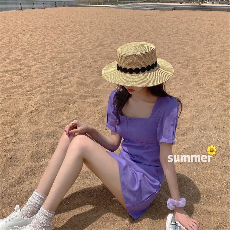 フランスのレトロなスクエアネックパフスリーブドレス女性2020年夏新しい気質ウエスト薄いスカートAラインスカート タオタオイ9205814878