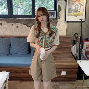 気質スーツ女性2020年夏ニュースタイルデザインシャツショートベストワイドレッグパンツファッションスリーピーススーツ タオタオイ47453644787
