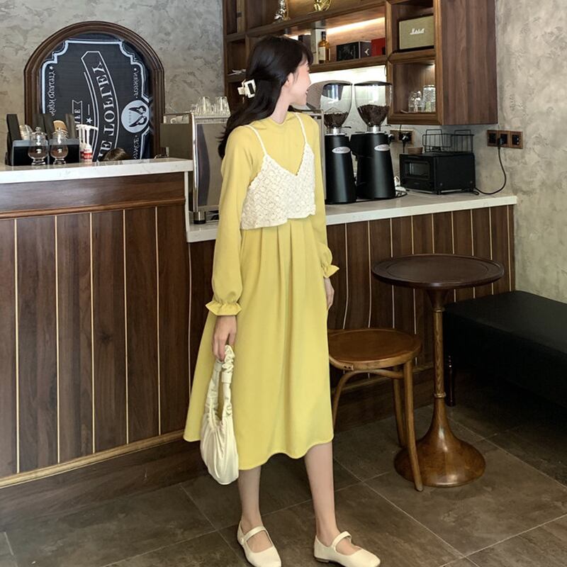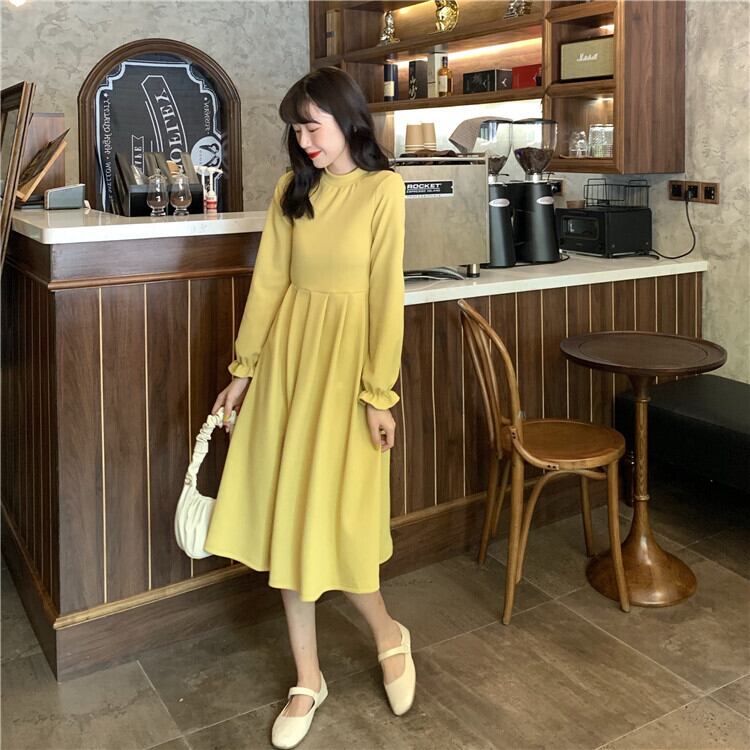 初秋ハイウエスト長袖ワンピース女性春秋2020新バージョンルーズAラインスカート薄秋スカート タオタオイ37223623582