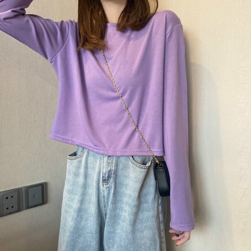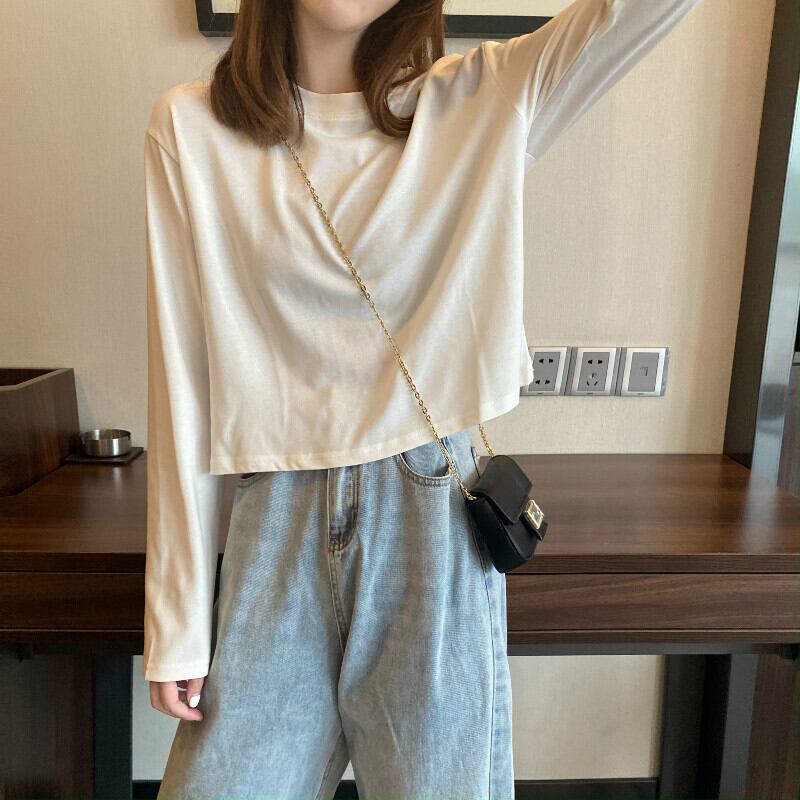 2020年夏の新バージョンのネットレッドホワイト長袖Tシャツ女性インスーパーファイヤールーズカジュアル無地ショートトップ タオタオイ67499189974