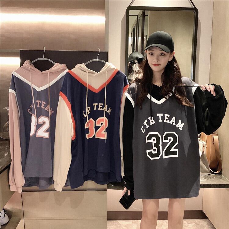 塩ベースの偽のツーピースフード付きセーター女性2020年春と秋新しいルーズな長袖トップレイジージャケットイン タオタオイ29723789430
