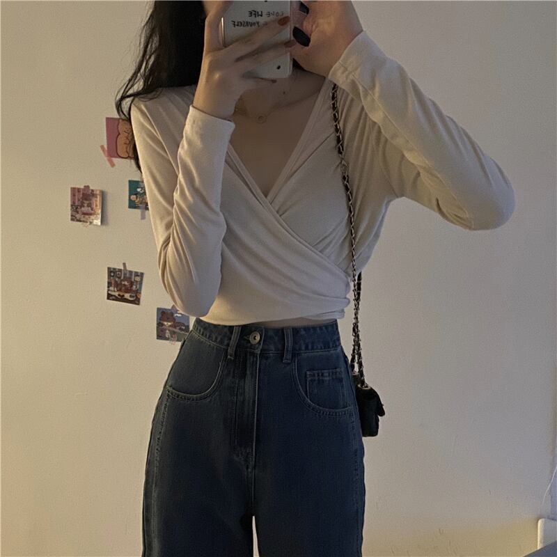 センス長袖Tシャツ女性2020年夏新バージョンスリムスリム気質Vネックインスーパーファイヤートップ タオタオイ65425604490