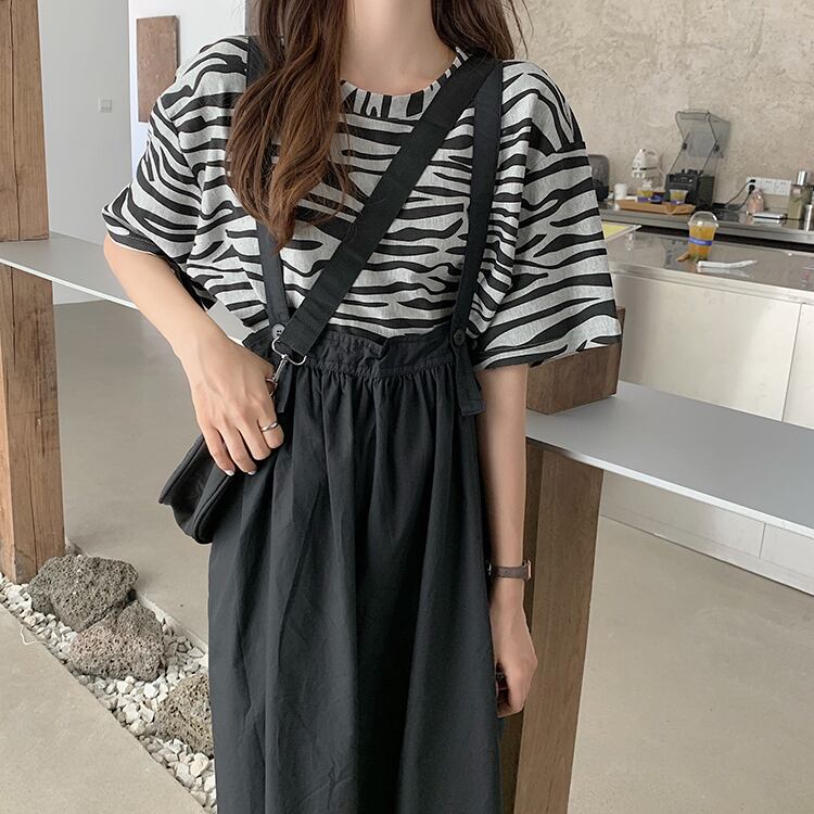 気質スーツ女性2020年夏ゼブラTシャツストラップスカートドレスネットレッドファッションツーピーススーツの新バージョン タオタオイ23275925789