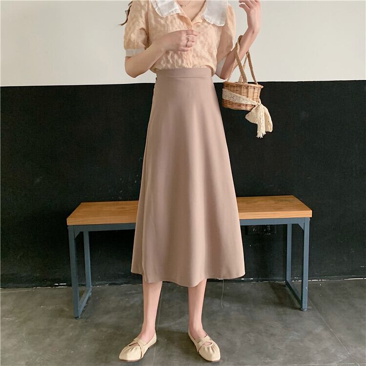 気質レディースハーフレングススカートレディースサマードレス2020新しいミドル丈ラージヘムスカートハイウエスト細いAラインスカート タオタオイ95777668482