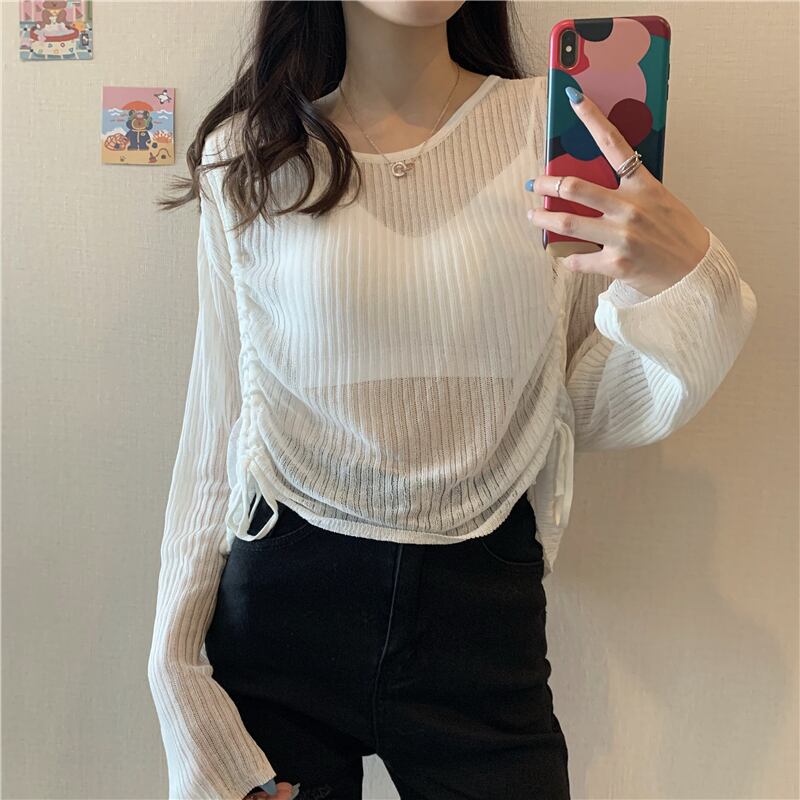 2020年夏の新バージョンは、ルーズな長袖プルオーバーセーターの女性がオールマッチの薄い日焼け止めトップを慎重に加工します タオタオイ17651024384