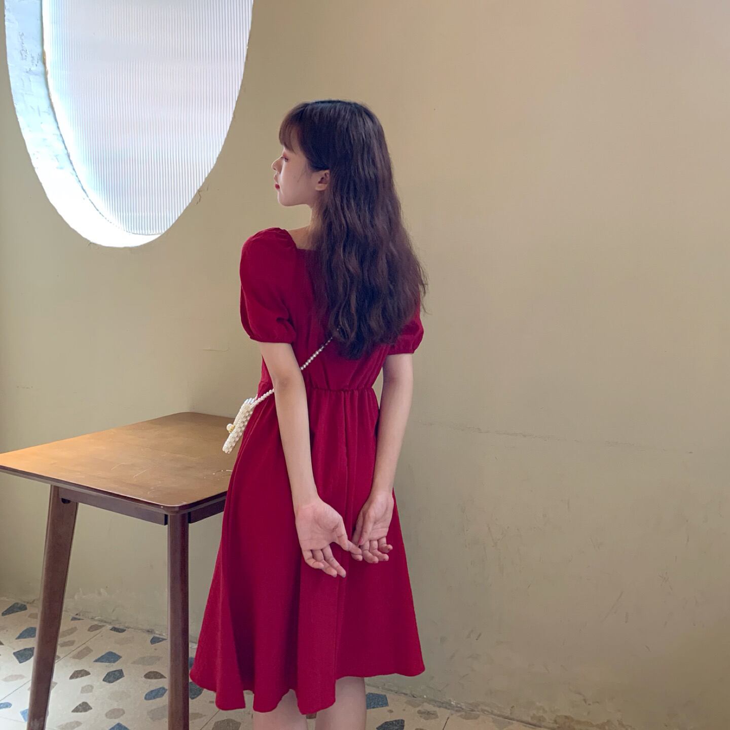 フランスのニッチなVネックパフスリーブドレス女性2020年夏新バージョンの細い気質Aラインスカートロングスカート タオタオイ77370549431
