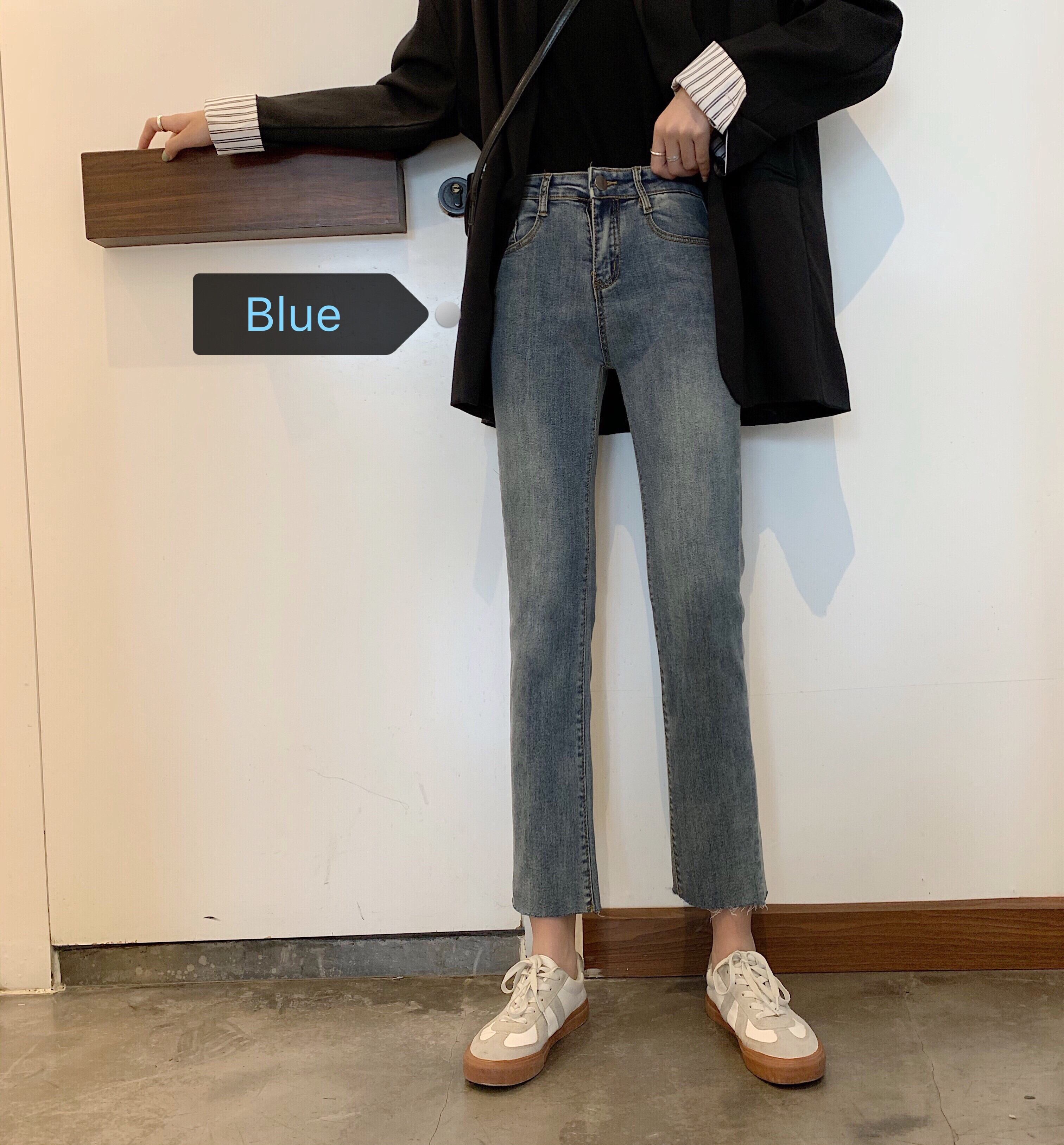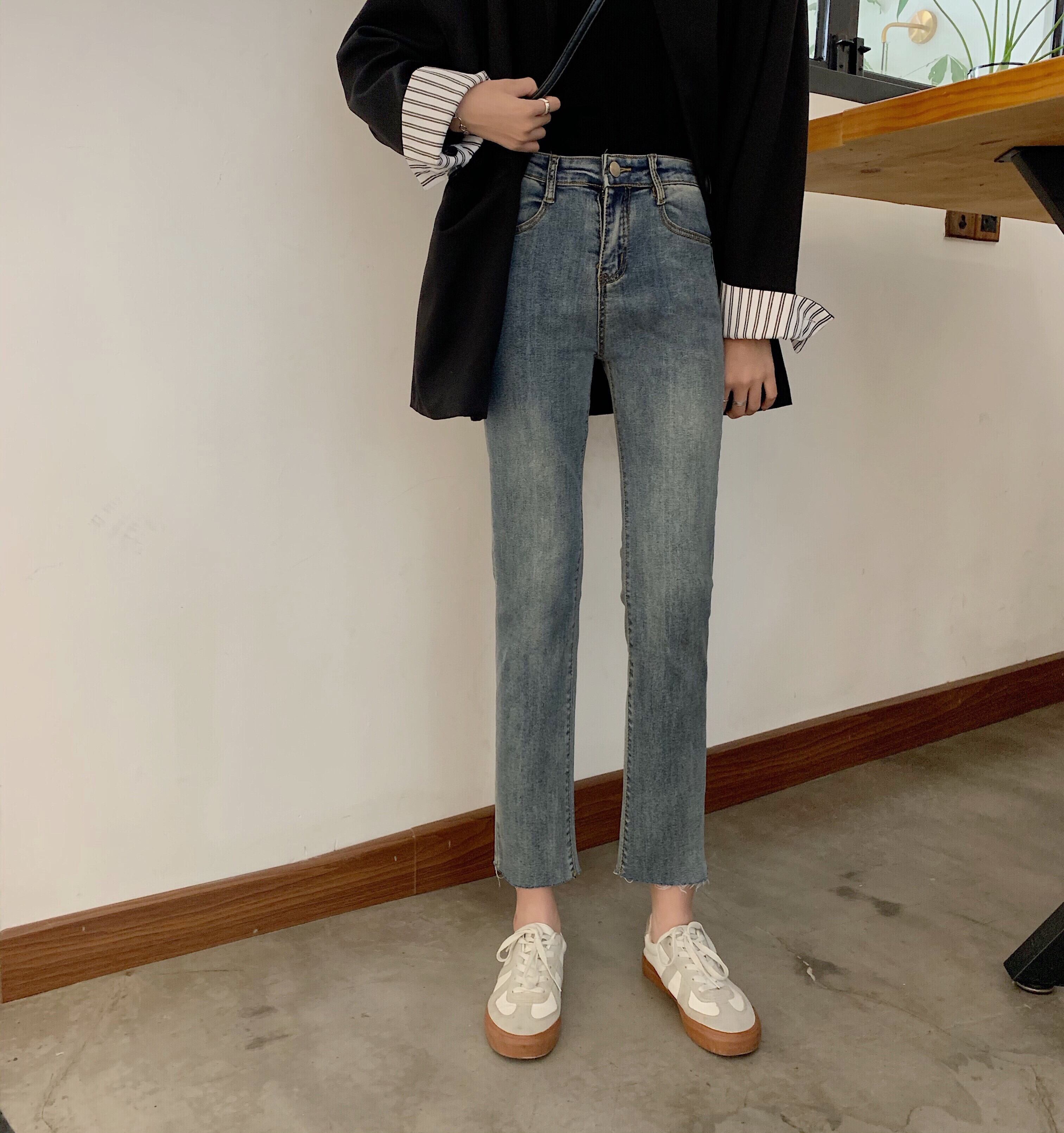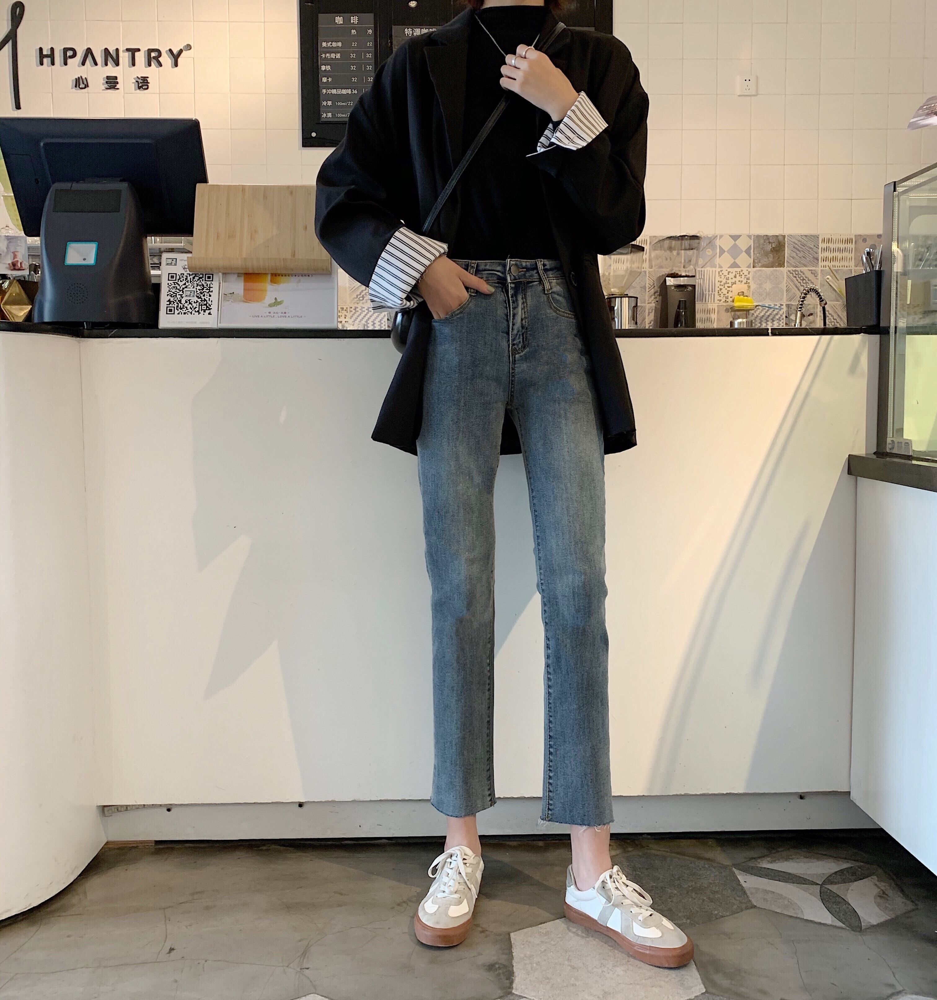 香港スタイルのハイウエストジーンズ女性の2020年夏のスリムスリムストレートレッグパンツの新バージョンオールマッチ9ポイントロングパンツ タオタオイ93261236027