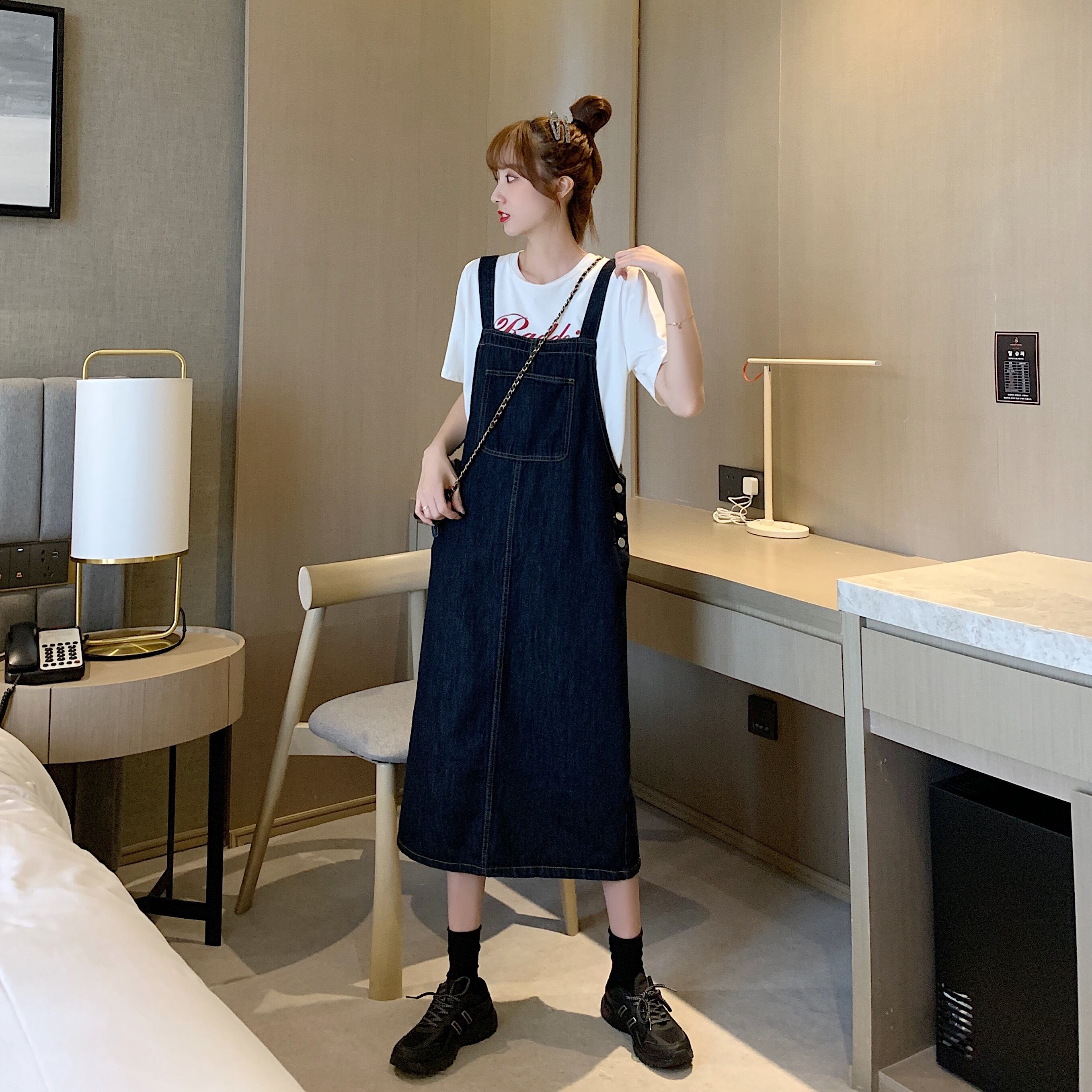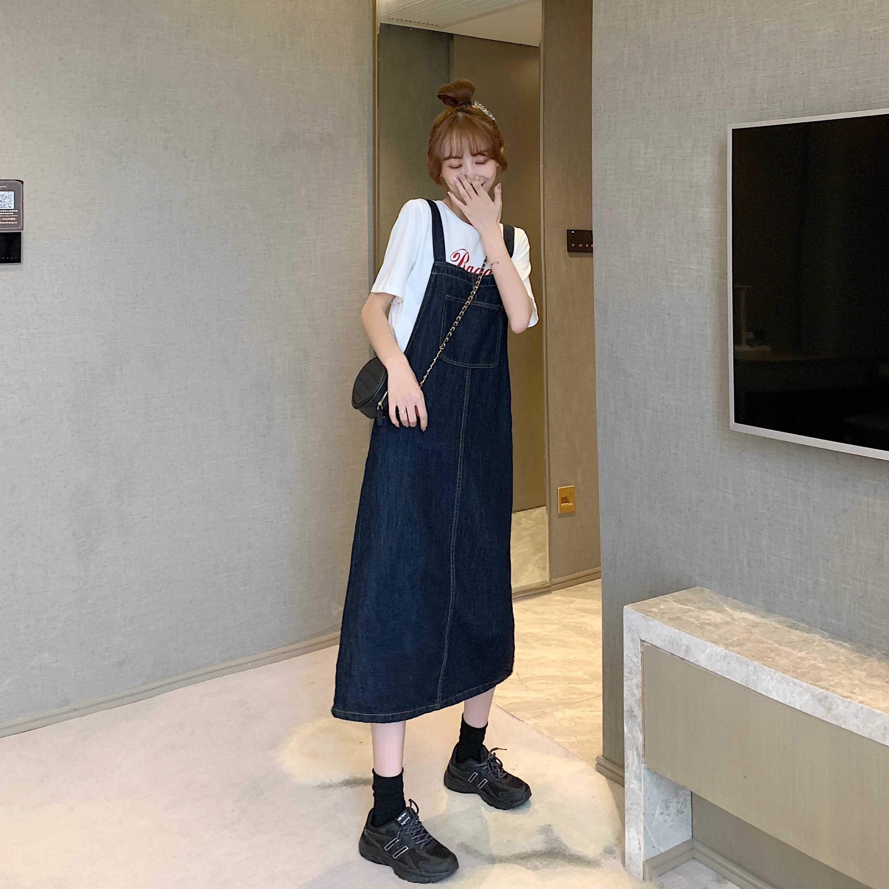 レトロデニムスカート2020年夏新作スモールマンドレスレディースサスペンダースカート気質スカートスプリットロングスカート タオタオイ63804843836