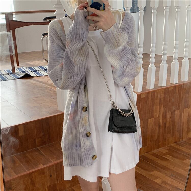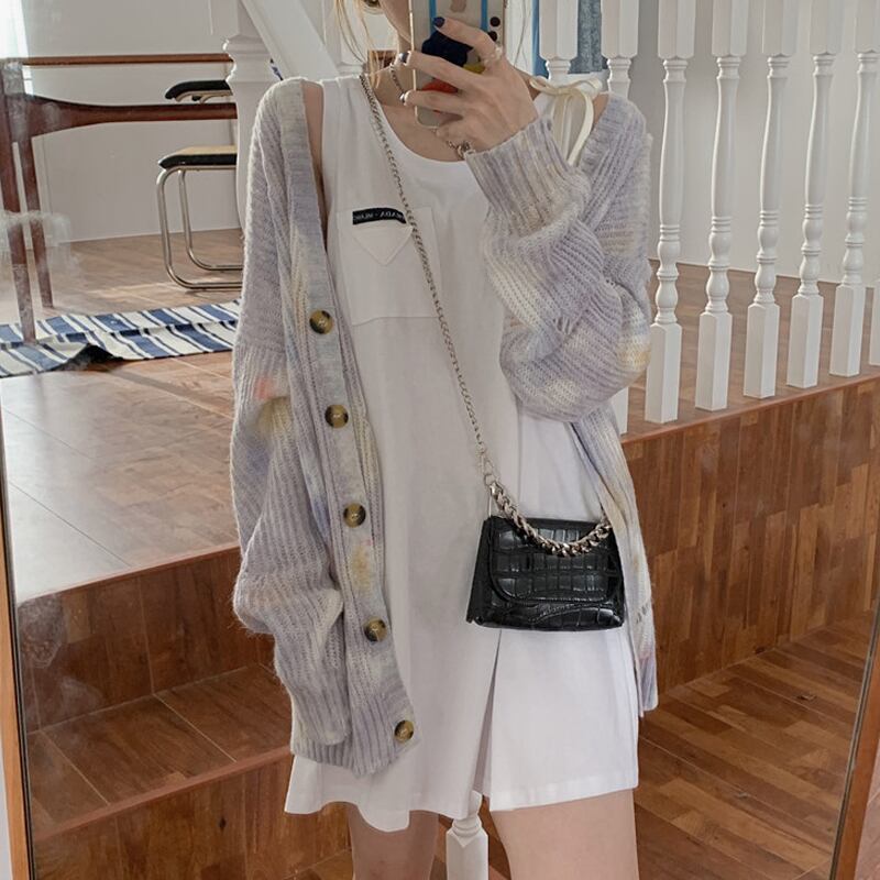 秋のスーツの女性2020新しいルーズレイジースタイルVネック長袖セーターボウノットベストスカートツーピーススーツ タオタオイ1789825635
