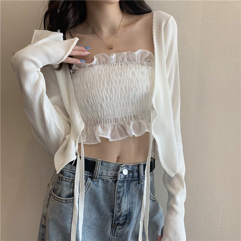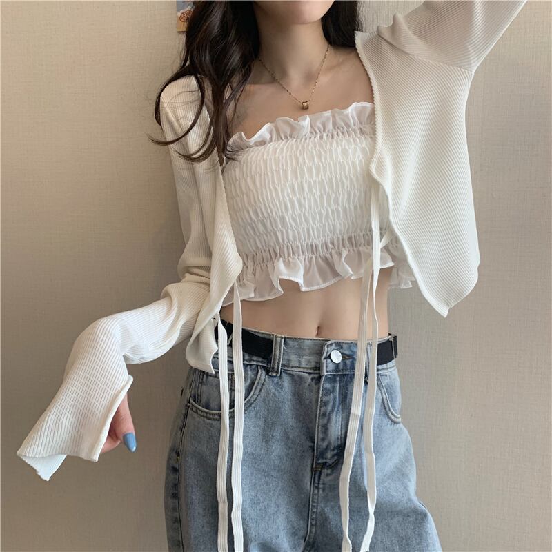 優しい風の白い長袖セーター女性2020年夏の新しいスタイルの気質薄いカーディガンオールマッチトップ タオタオイ74763000822