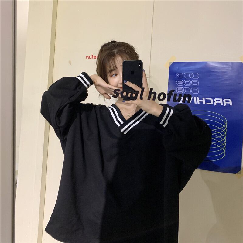 2020年春秋新ネットレッド長袖シックトップルーズVネックホワイトソルトセーター女性インタイド タオタオイ6110624190
