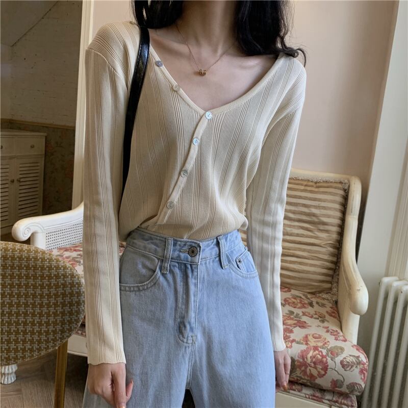 2020年秋新作Vネック半袖半袖シャツバージョンルーズ&シンウエスタンスタイルネットレッドシンニットセーターレディース タオタオイ6754112611
