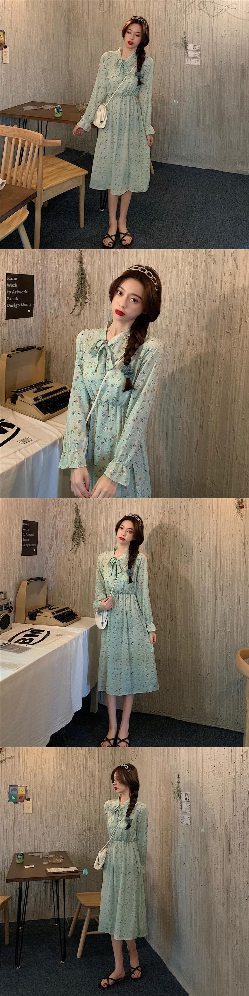 秋のフレンチフローラルスカート2020新しいロングスカート細いウエストシフォンドレス女性ネットレッドaラインスカートトレンド タオタオイ92604274520