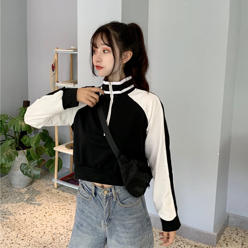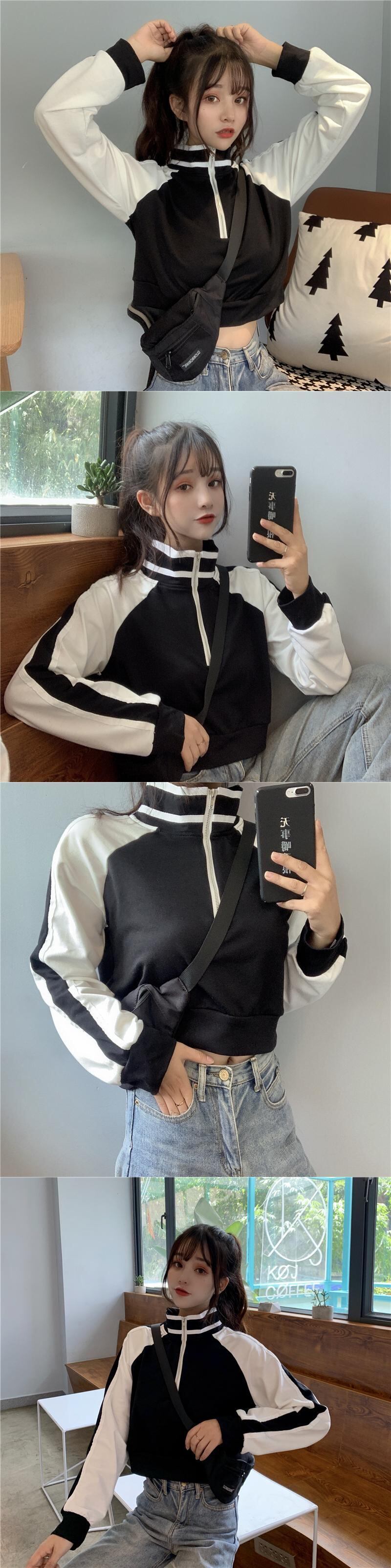 ネットセレブスタンドアップカラープルオーバー長袖セーター女性2020年秋新バージョンルーズショートワイルドスチューデントトップトレンド タオタオイ68179101865