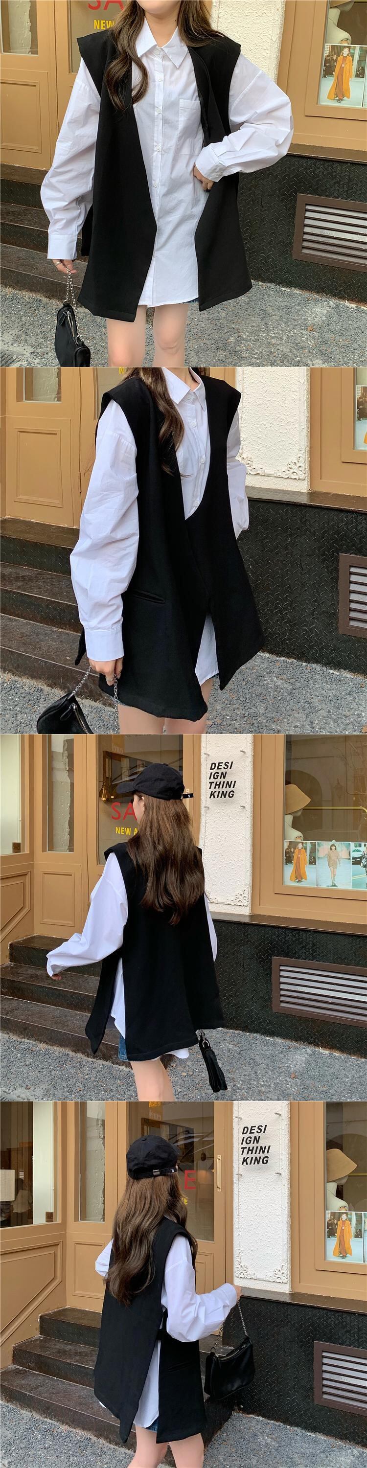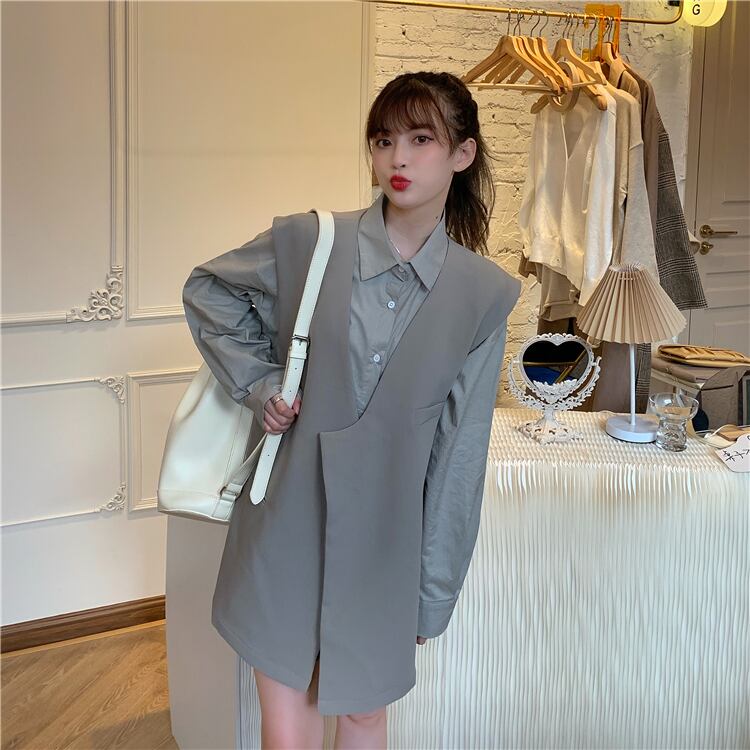 気質の女神ファンスーツ女性2020年秋新しいノースリーブスーツベストシンプルな長袖シャツツーピース タオタオイ74332679157
