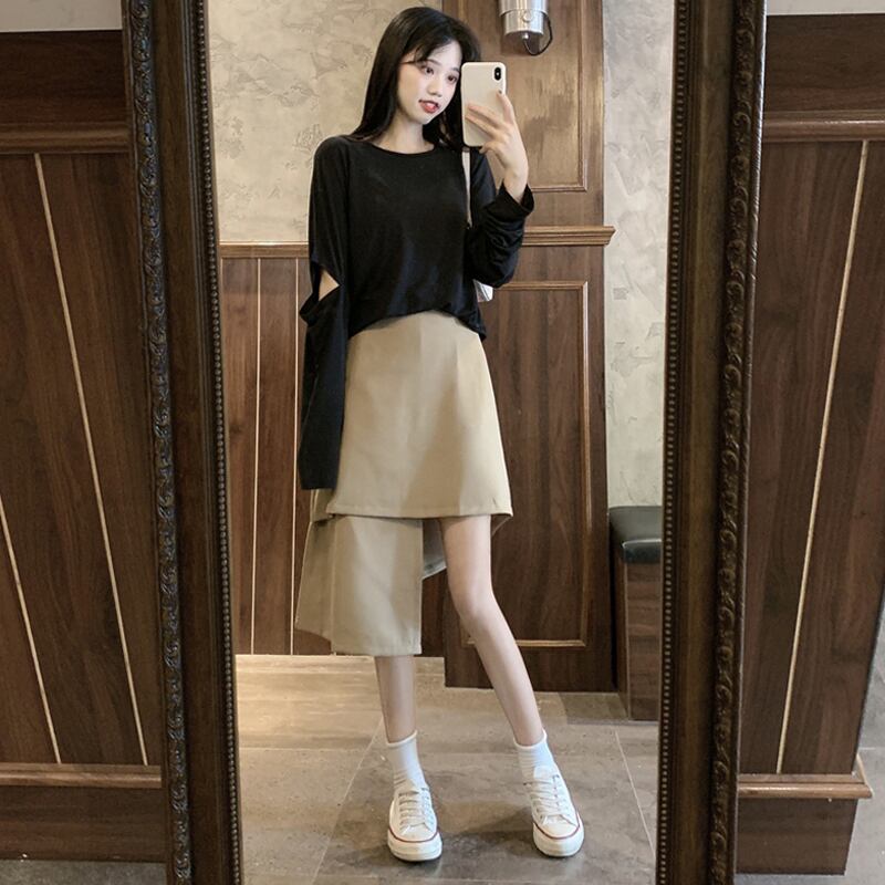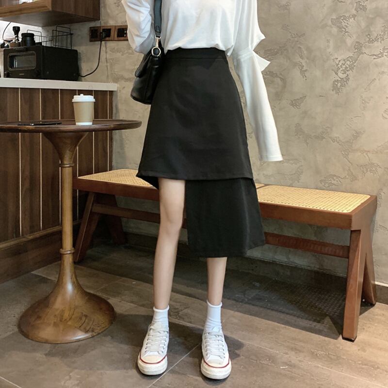 不規則なスカート2020年夏新しいハイウエストブラックハーフレングススカートレディースミドル丈細くてヒップなAラインスカート タオタオイ39615721783