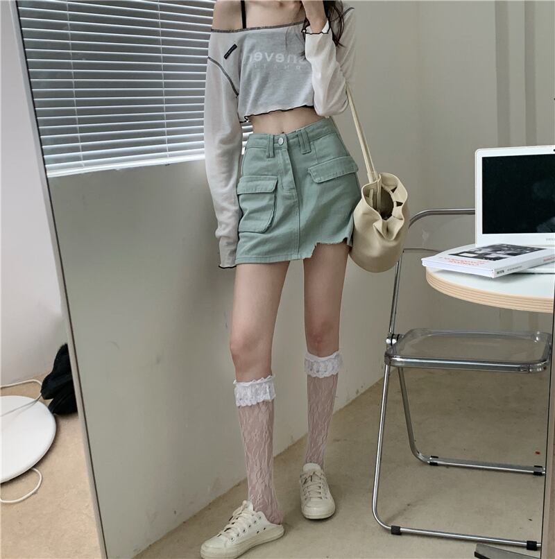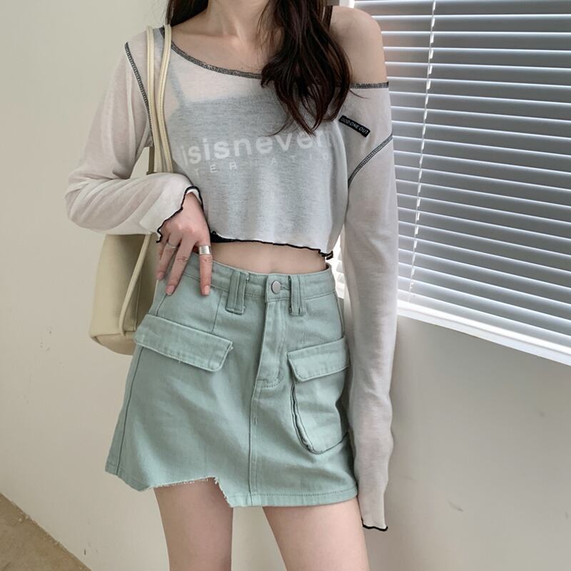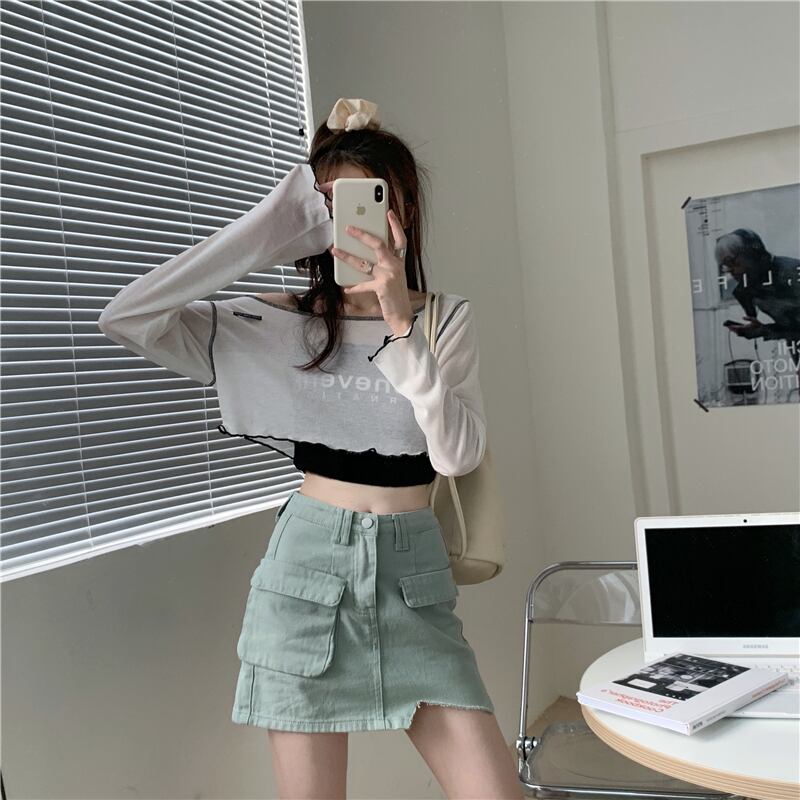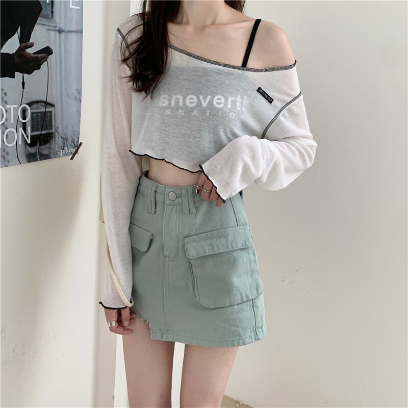 色:スリングシングルピース,長袖Tシャツワンピース,シングルグリーンデニムスカート