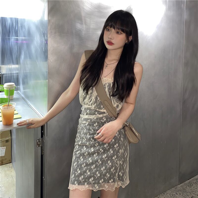 フレンチレトロドレス女性2020年夏新気性ウエストスリミングサスペンダースカートバッグヒップAラインスカート タオタオイ94604928326