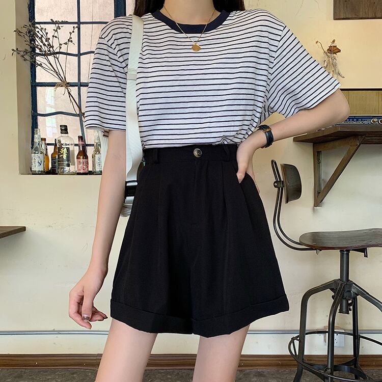 パンツ スプリングルーズハイウェストウェスト薄手ワイドレッグショーツ 春物 ブルマー ワイドパンツ タオタオイ72931987803