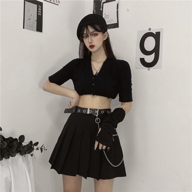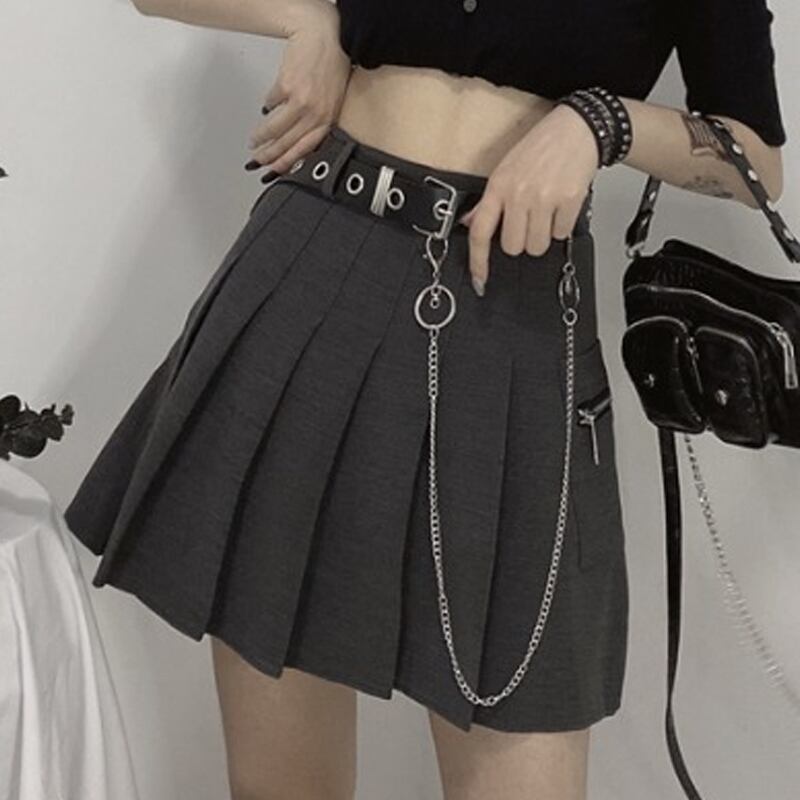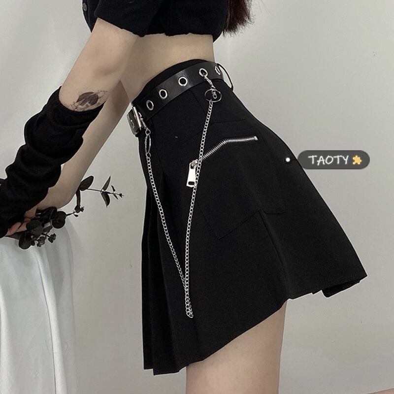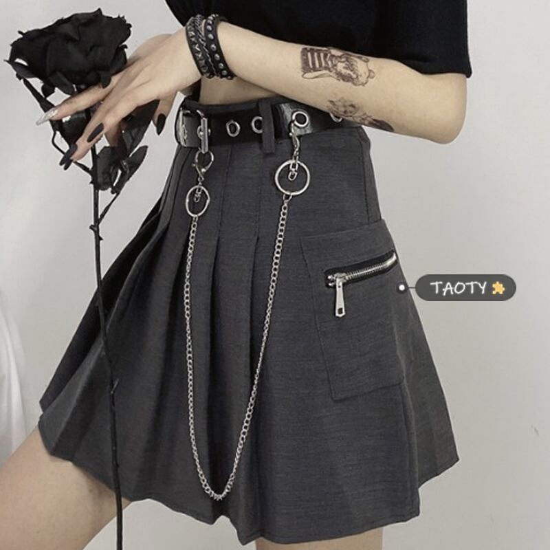 スプリングレッドチェーン スカート ショートハイウェストウェスト薄手Aラインプリーツ 春物 タオタオイ28046239848