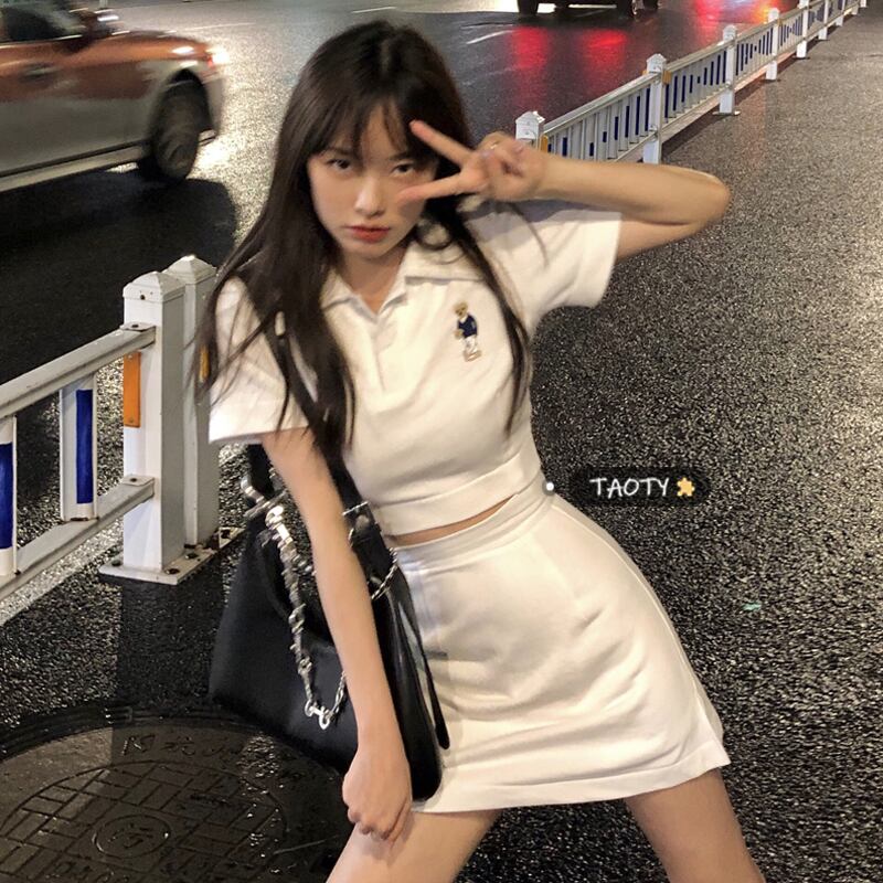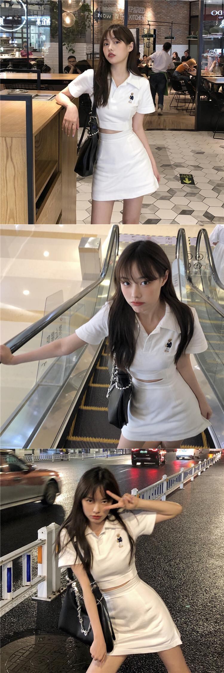 レッドスプリングカラーショートトップス ハイウェストウェストAラインスカート 春物 タオタオイ30505051329
