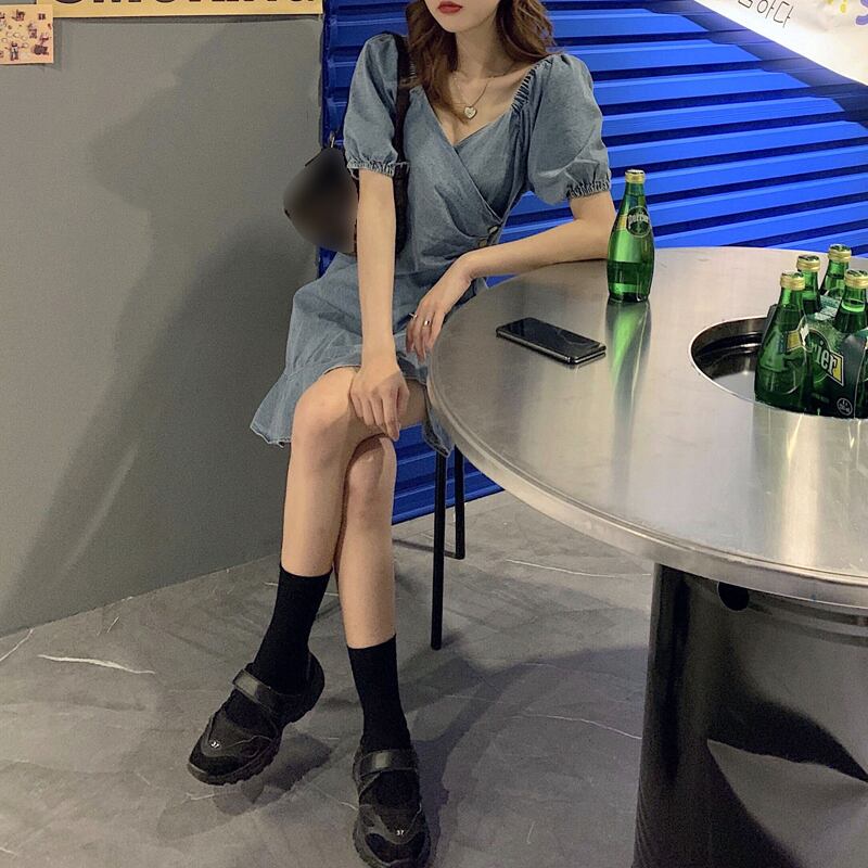 スプリングスタンダードVネックスリーブドレス ショートスカート レトロ 春物 タオタオイ8590891923