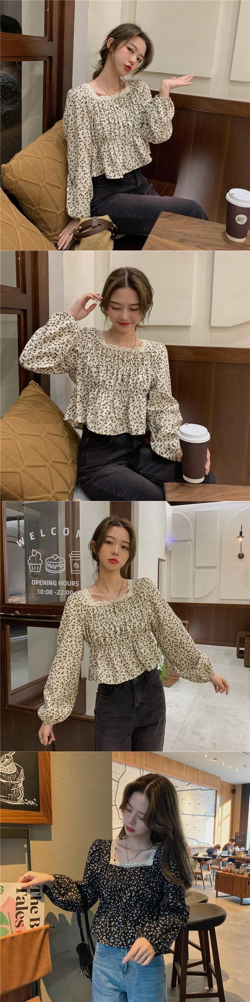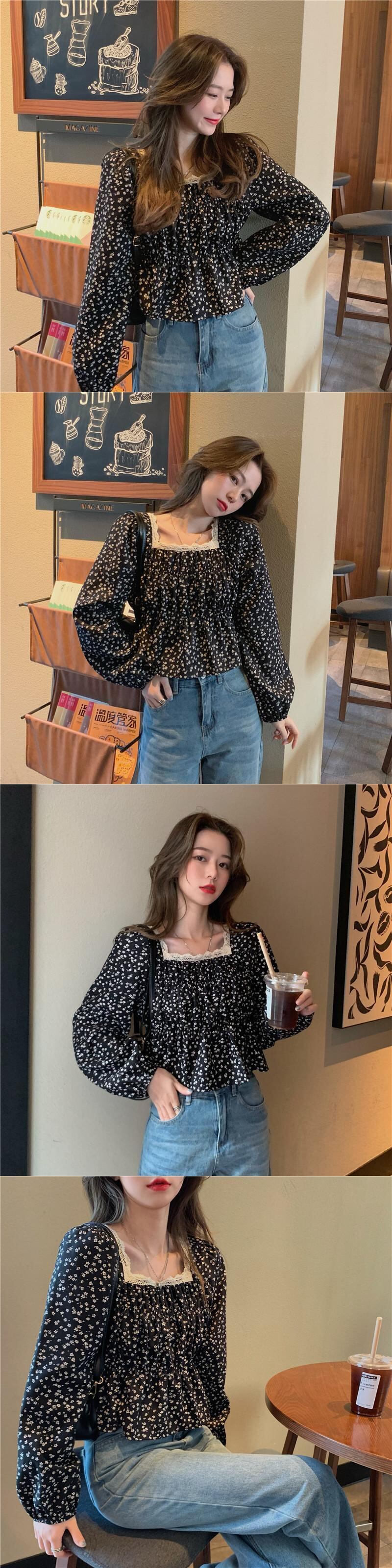 スプリングスタイル薄手スタンダードレースカラーシャツ フローラル長袖スリーブショート ロング レトロ 春物 花柄 スクウェア タオタオイ73547987835
