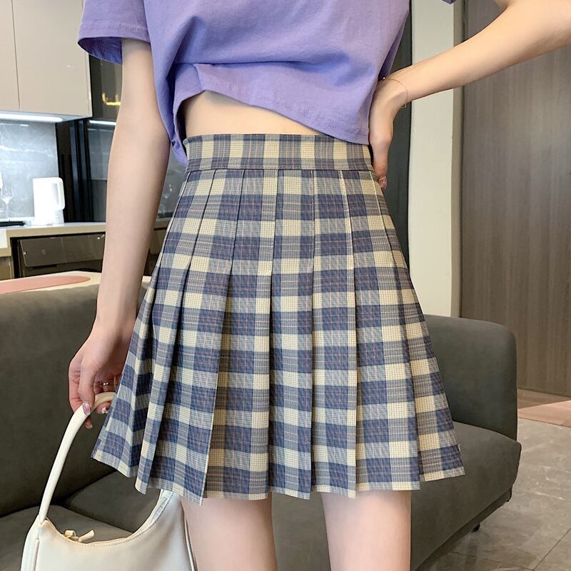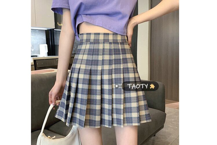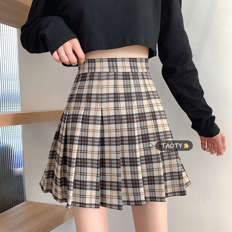 ハイウェストAラインスカート ショートスプリングスタンダード薄手格子柄プリーツ レトロ 春物 タオタオイ28602646568
