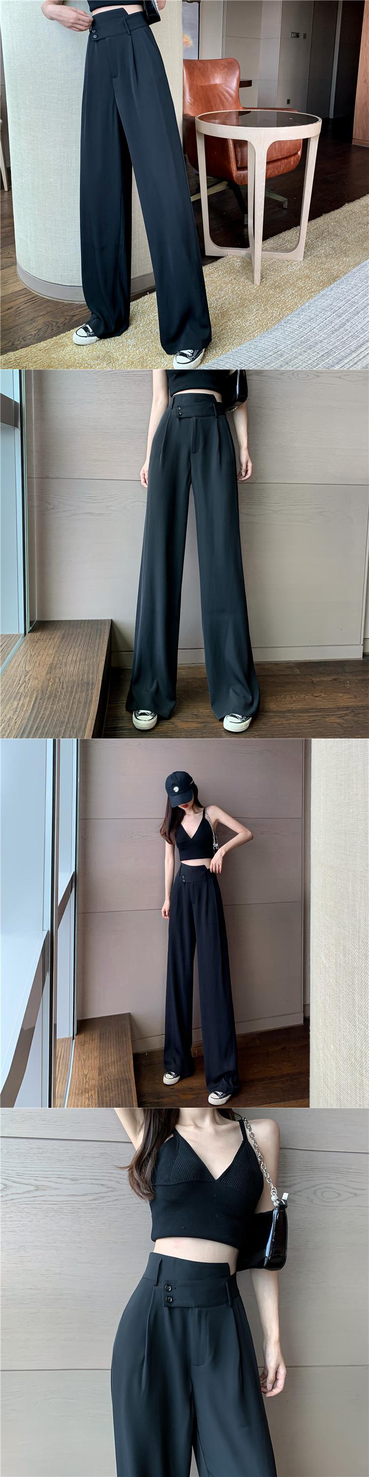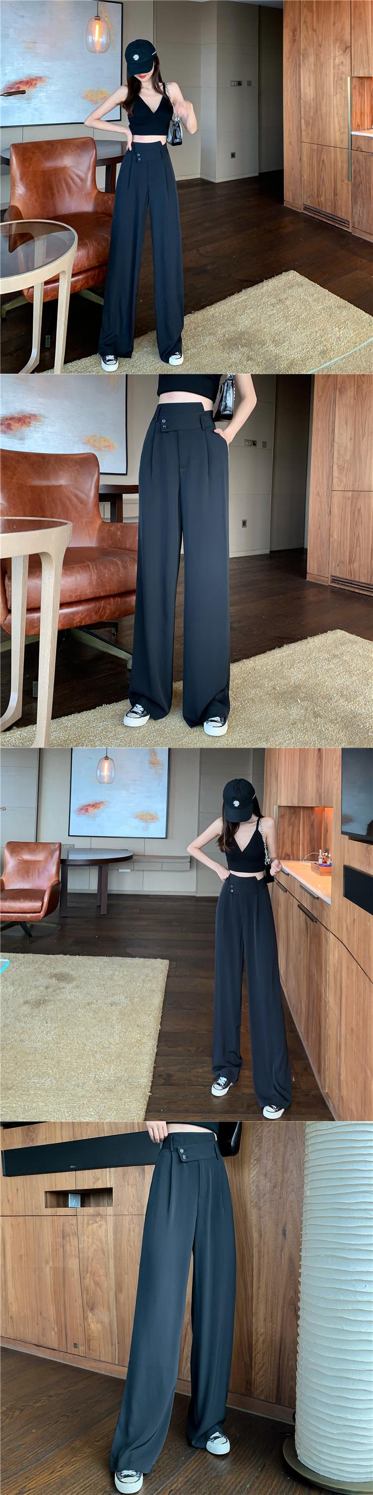 ウェストワイドレッグパンツ スプリングオータムブラックルーズカジュアルレディース 春物 秋物 ワイドパンツ タオタオイ42820353172