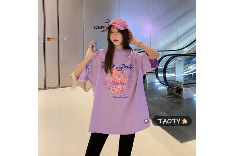 スプリングプリント柄Tシャツ シャツ ルーズトップス サマー 春物 夏物 タオタオイ23190197740
