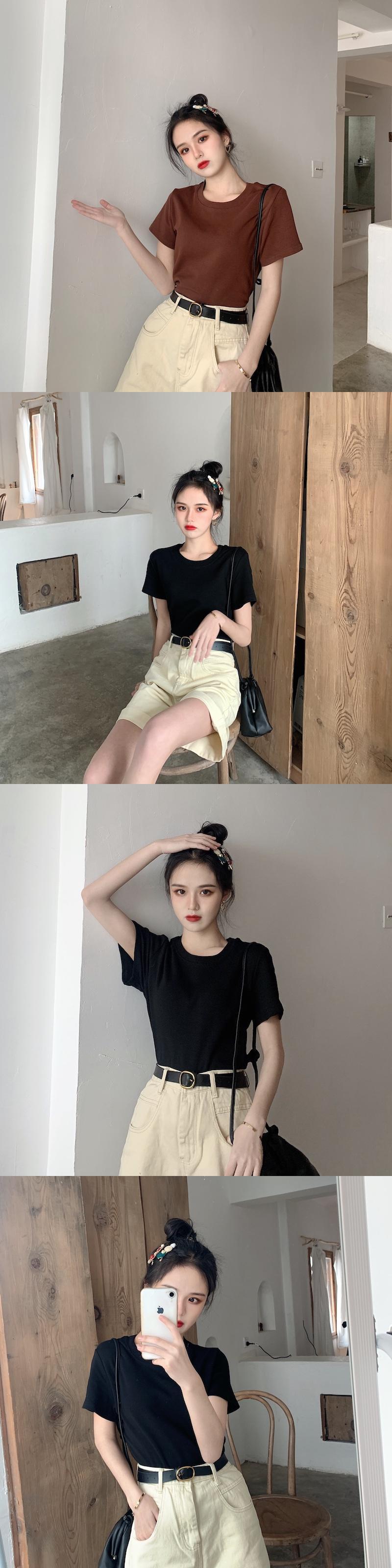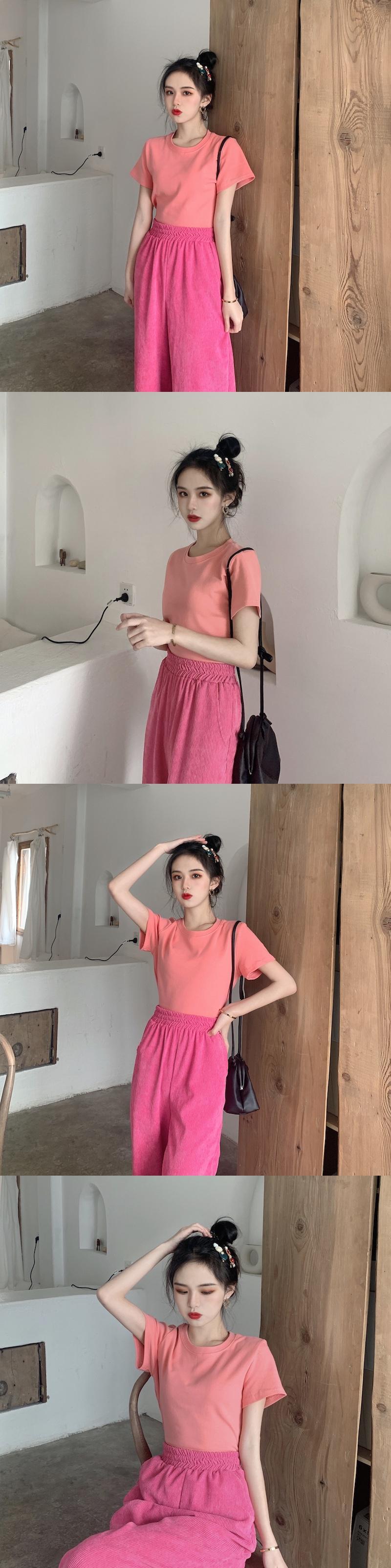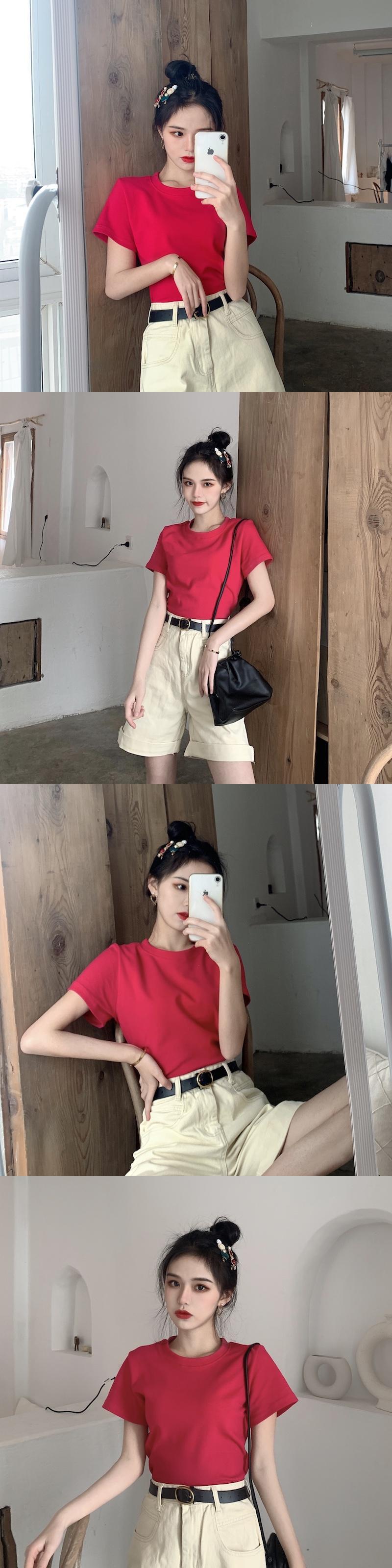 Tシャツ シャツ スプリングソリッド カラーラウンドネックレッドスタイルジャケット 春物 Oネック ソリッドカラー タオタオイ22907231786