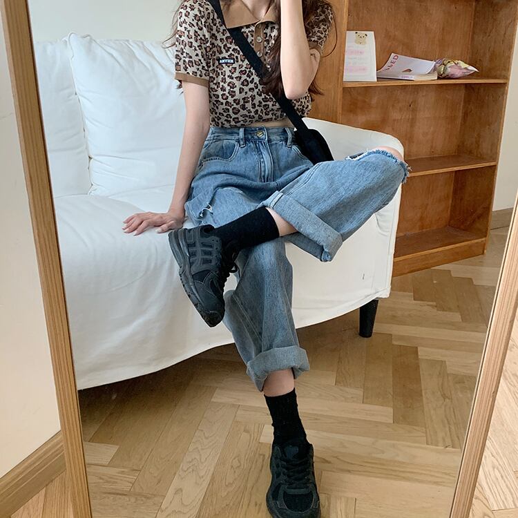 ジーンズ スプリングオータムルーズハイウェストパンツ 春物 秋物 タオタオイ13261098709