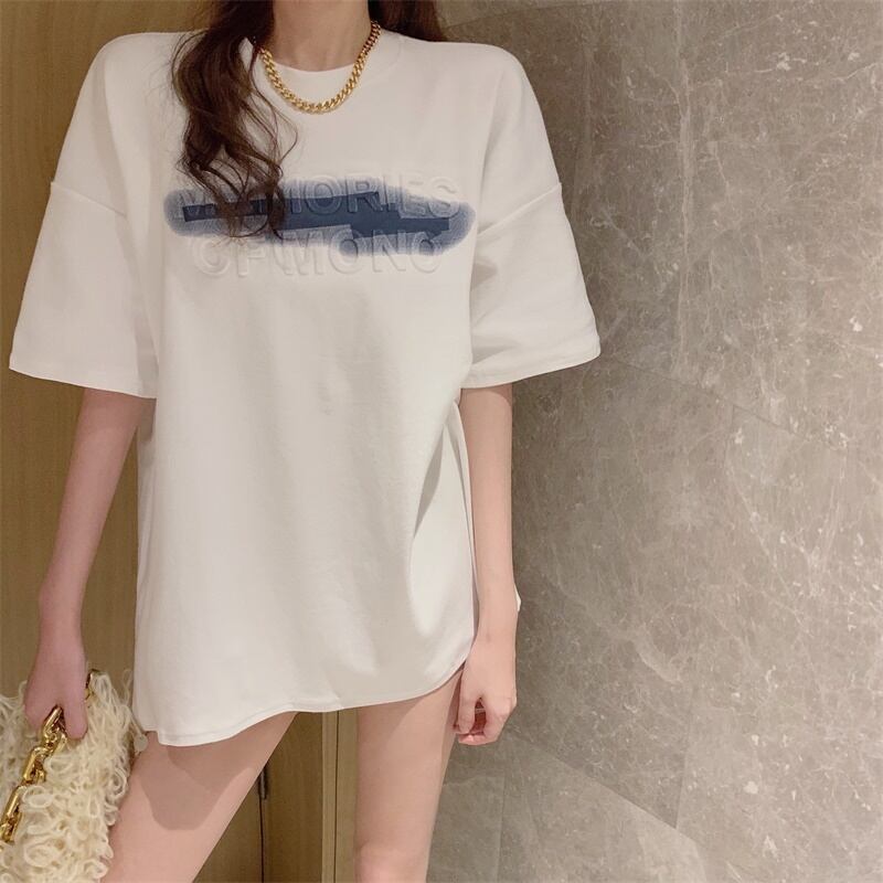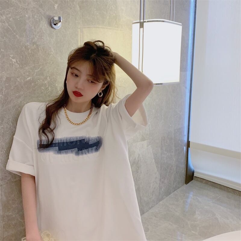 ホワイトTシャツ シャツ スプリングサマープリントルーズ薄手ラウンドネック 春物 夏物 Oネック タオタオイ44486172306