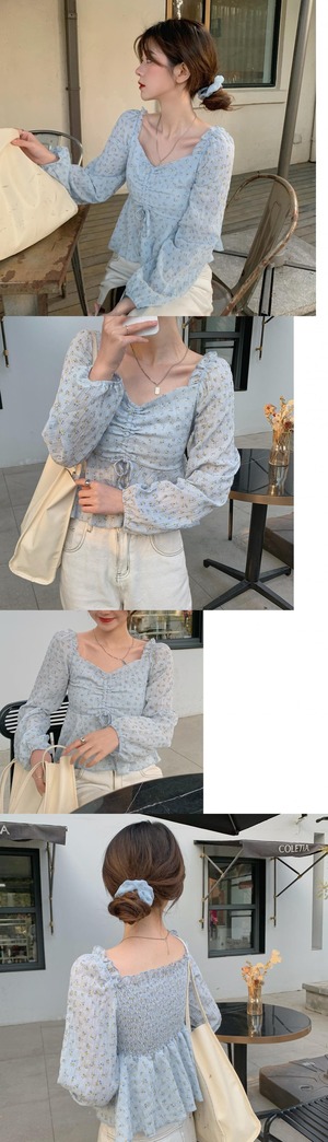 フローラルVネックブラウス スプリングオータムシャツ レディーススタンダードスタイル ロング レトロ 春物 秋物 花柄 タオタオイ14032663217